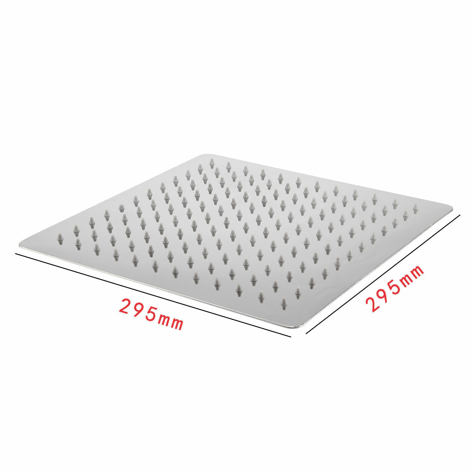 12 Large Square Shower Head Chrome Stainless Steel Rainfall Overhead Bathroom