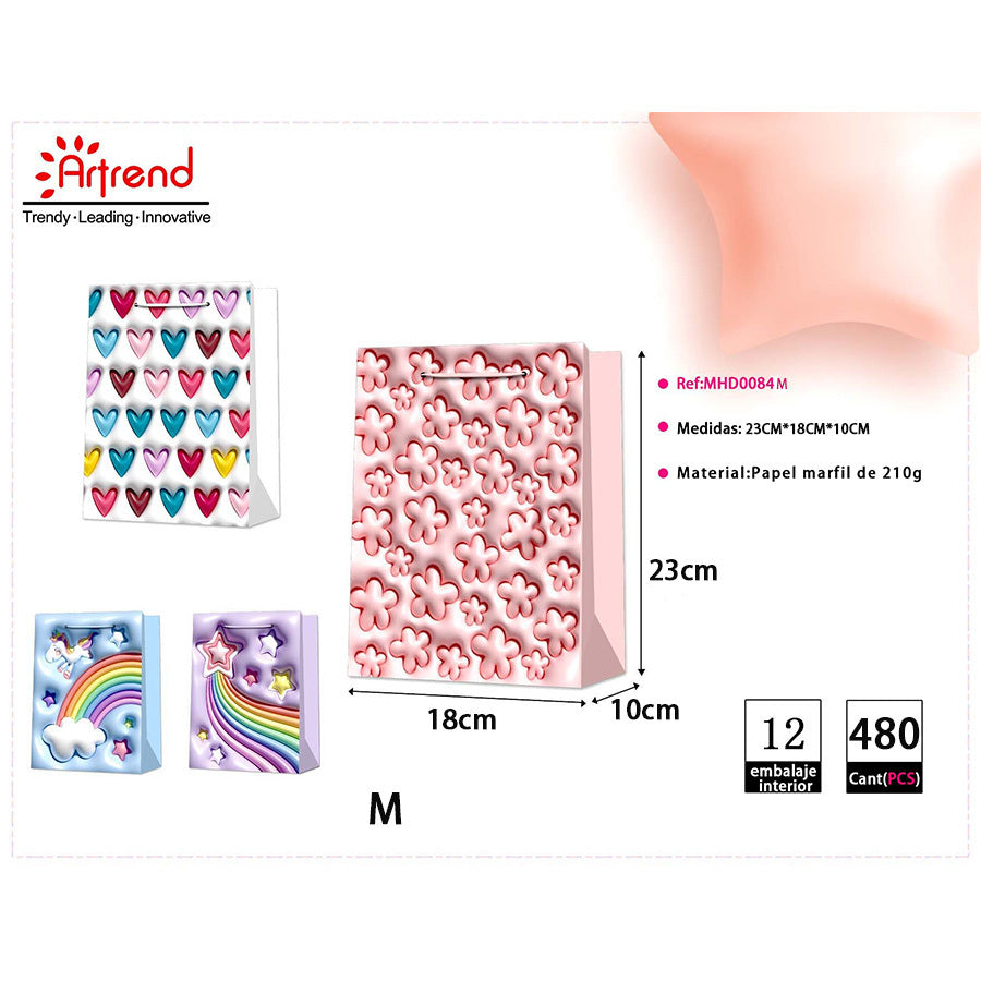 12-piece Exquisite Gift Bag, Cartoon Pattern Design, Suitable For Birthday Parties, Gift Packaging, Valentine's Day, Baby Shower And Other Occasions, Reusable