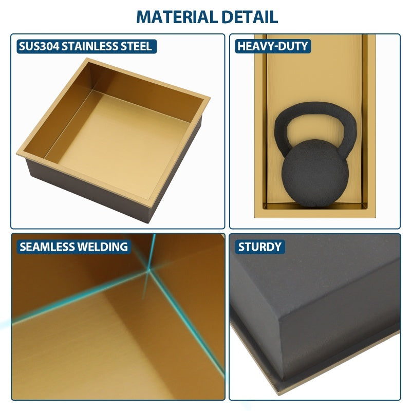 12 X 12 In Stainless Steel Shower Niche - Gold, Waterproof, Easy Installation, Corrosion-Resistant