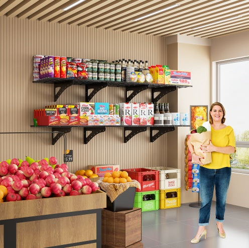 - Multi functional storage solution: This heavy-duty metal wall bracket is perfect for use in storage rooms, garages, supermarkets, and other places. Wall mounted provides more storage needs for your space.