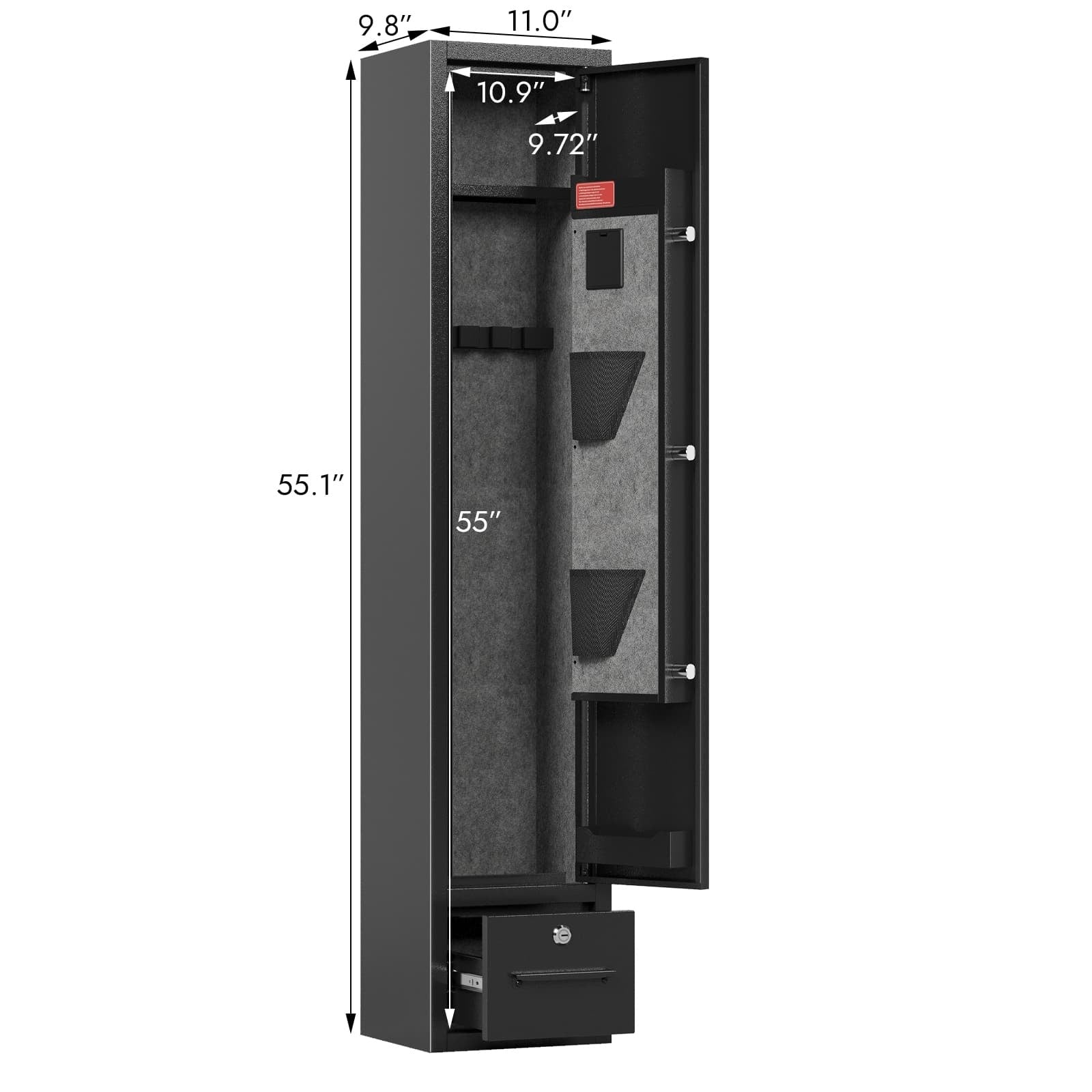 4 - Gun Capacity Rifle Safe. Holds Rifles, Pistols, Shotguns. Digital Lock For Quick Access. Removable Shelf. Special Gun Rack For Scoped Rifles. Plus, A Handy Storage Drawer