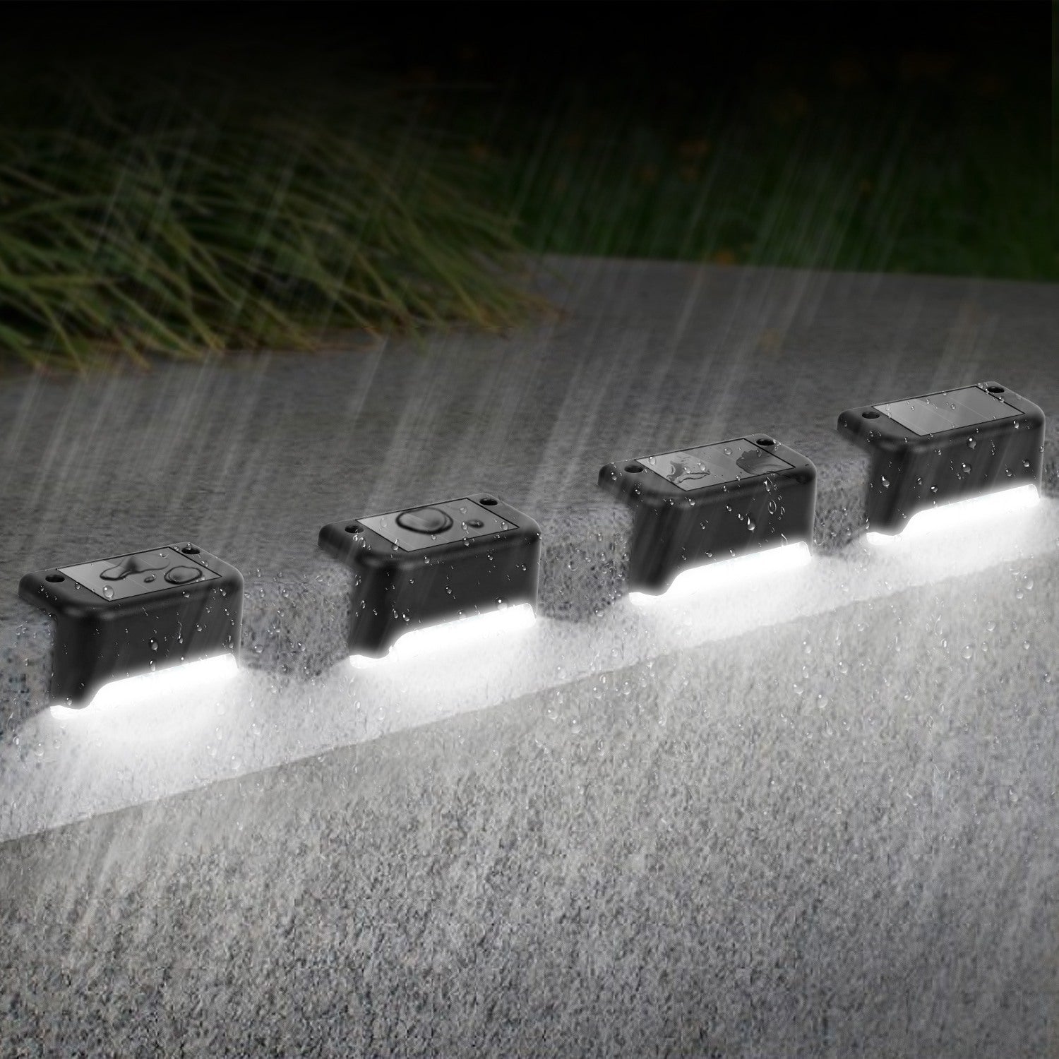 4Pcs Solar Powered LED Step Lights Outdoor Water-Resistant Dusk To Dawn Sensor Fence Lamps For Stairs Yard Railing