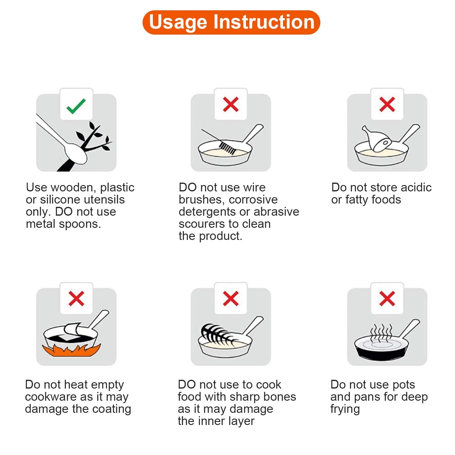 1.This cookware is not scratch resistant. To maintain a beautiful polish,we recommend avoiding the use of metal utensils with this cookware.