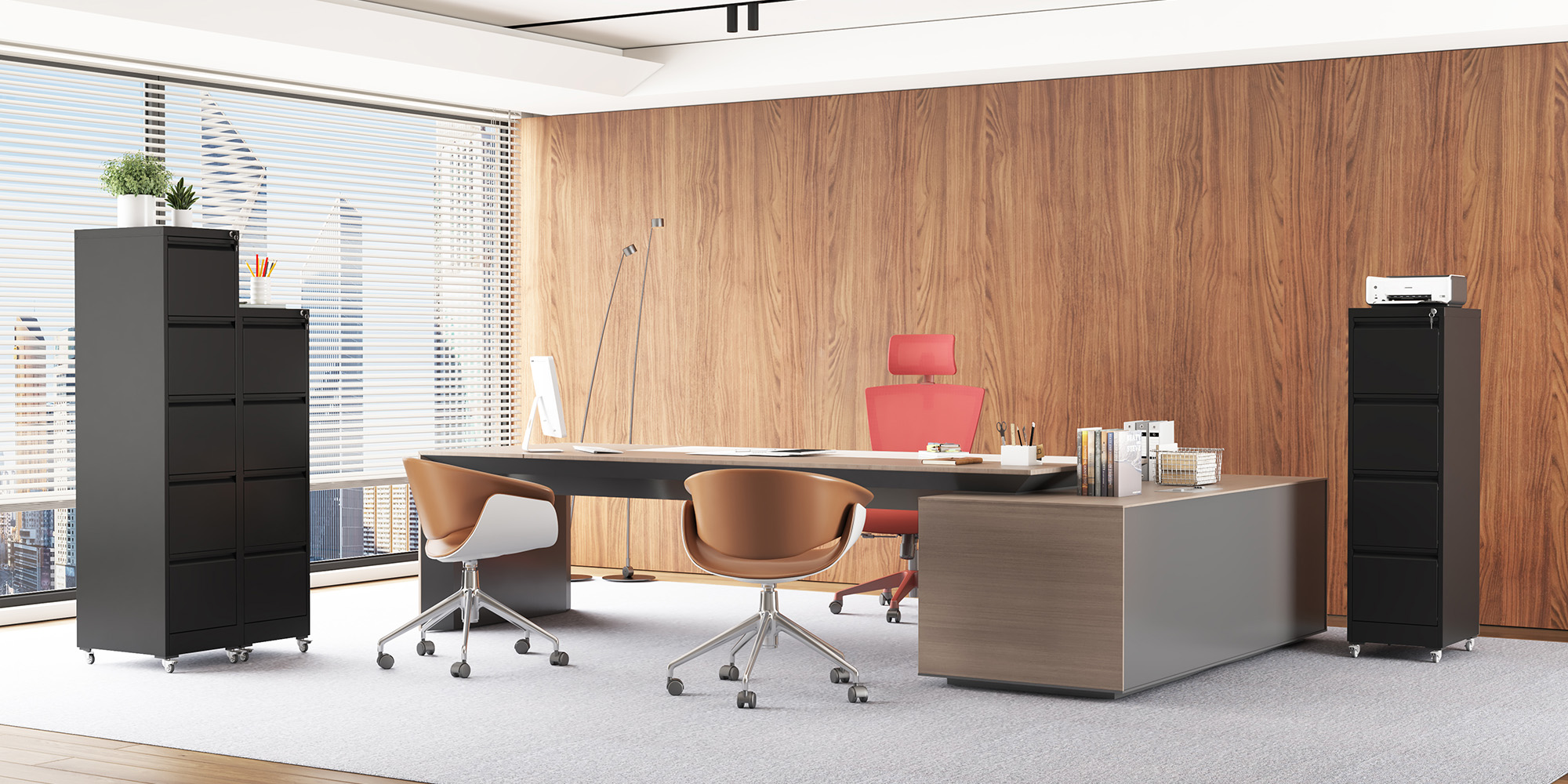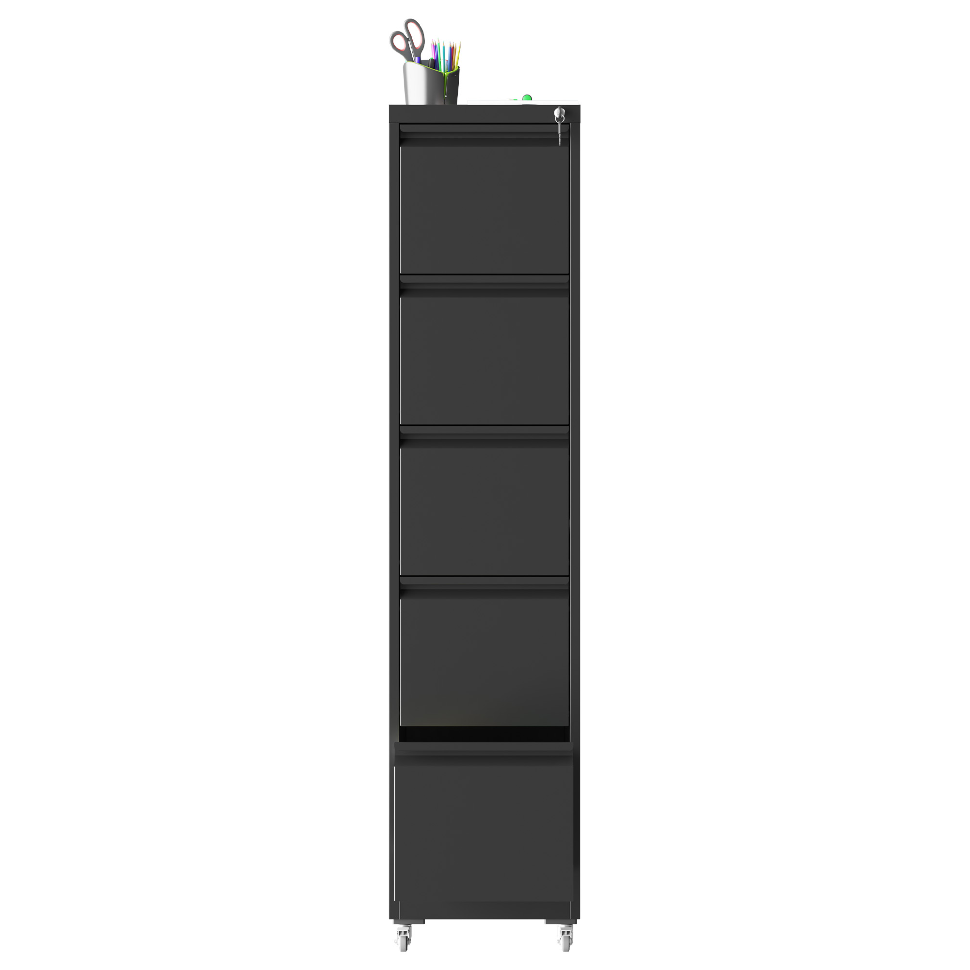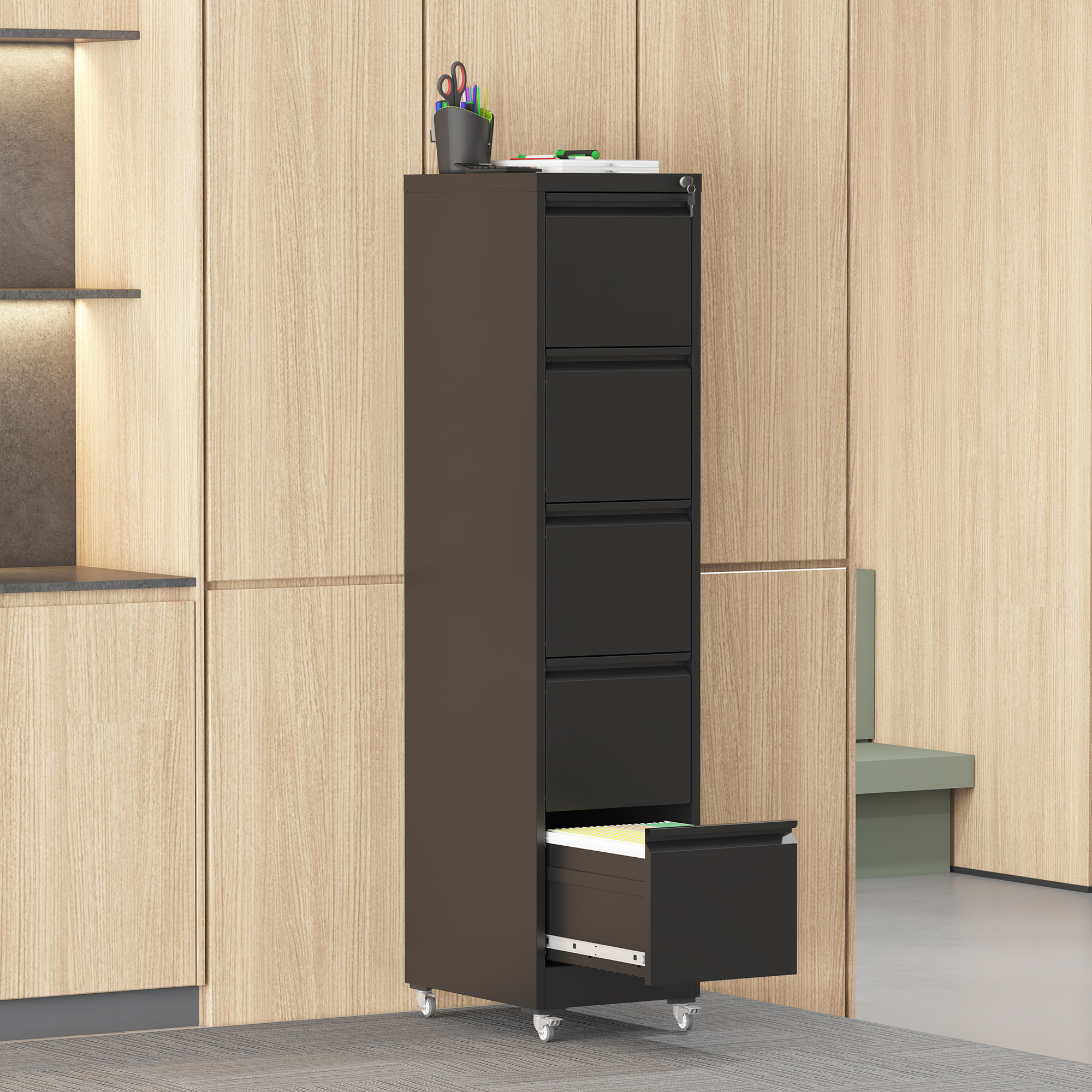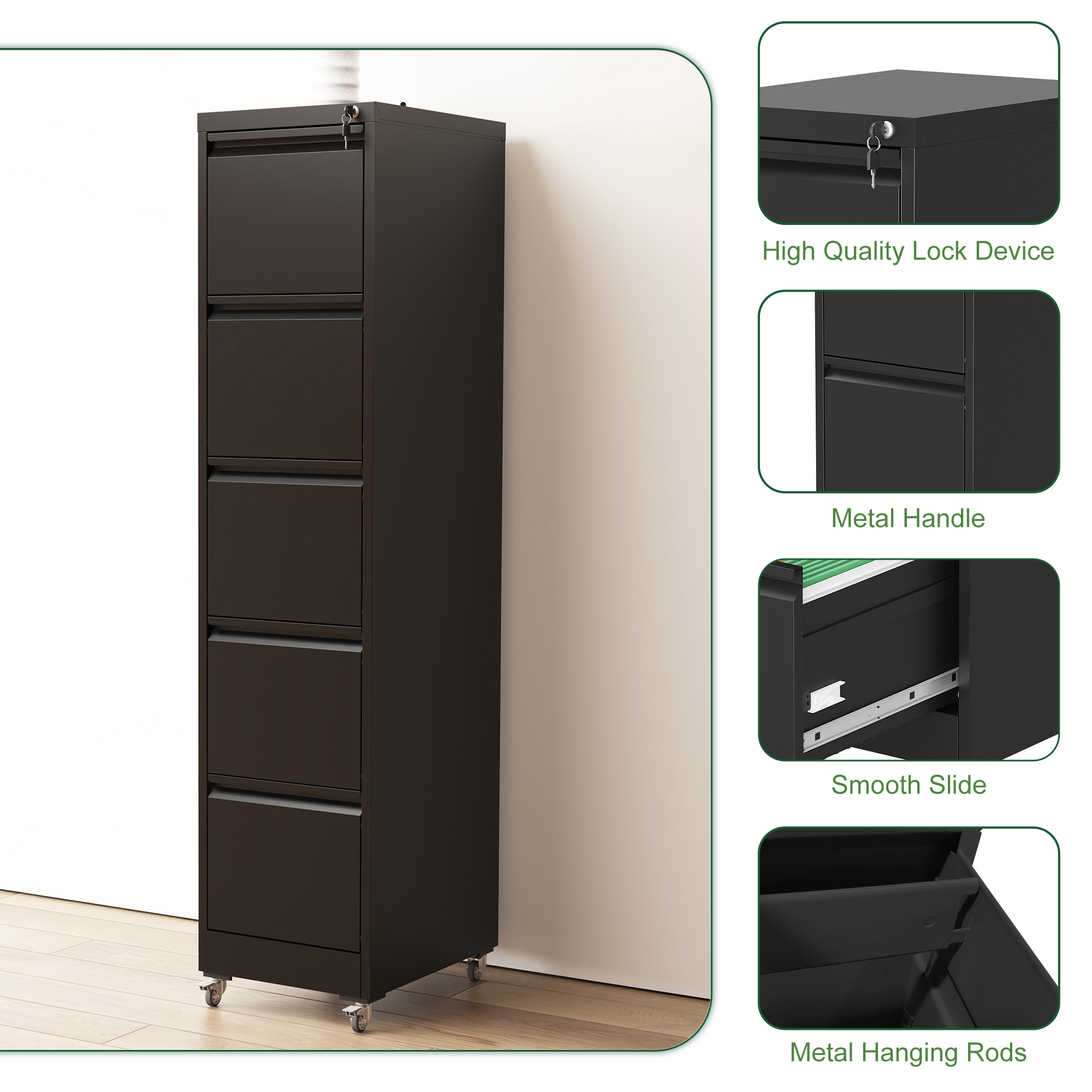 5 Drawer Metal Vertical File Cabinet With Lock On Wheels For Home Office,Heavy Duty Metal Storage Cabinet For A4 Letter Legal Size Files, Black