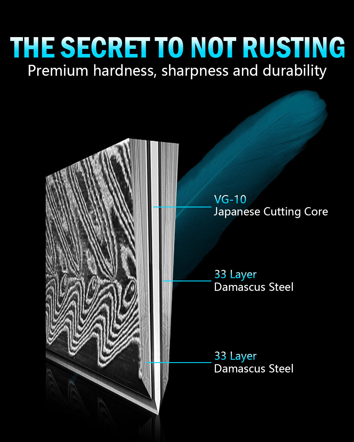 - 5 INCH UTILITY KNIFE - Professional utility knife is forged with an authentic Japanese VG10 slicing core for superior resistance to rust and corrosion, ensuring flexibility and maximum edge retention. 66-layer Damascus Steel The herringbone pattern of the coating adds to the beauty. It is not only a cooking tool, but also a work of art. The hardness reaches 60±2HRC and can remain sharp for a long time