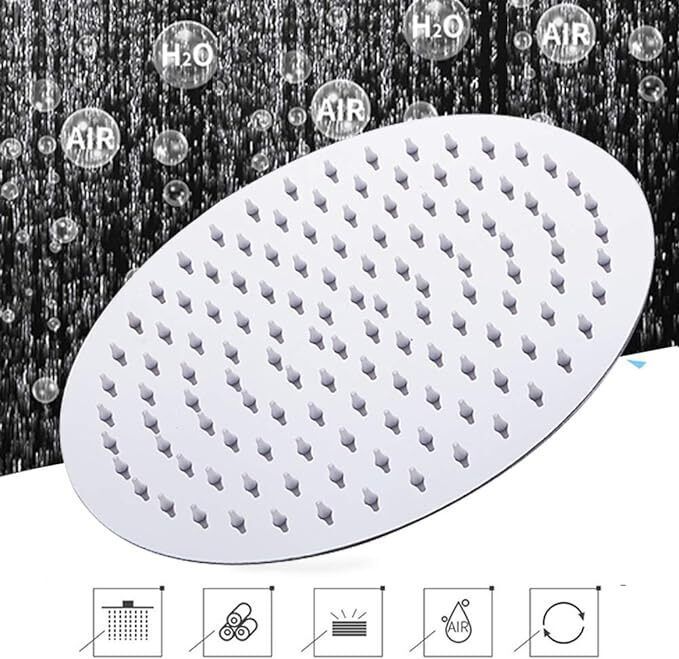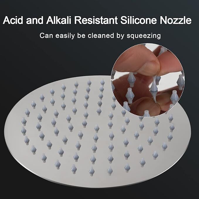 304 Stainless Steel304 stainless steel rain shower head (brushed nickel finish), corrosion resistant and highly durable. The ultra-thin design of only 0.078" update and modernize your bathroom. |