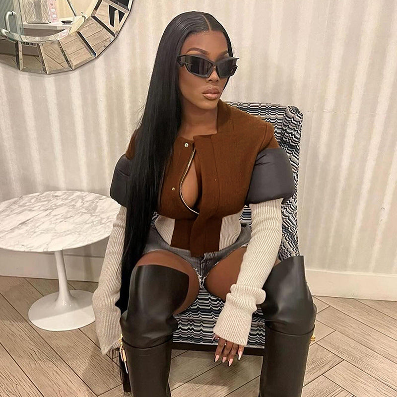 Autumn And Winter New Contrast Color Stand-up Collar Zipper Cardigan Outerwear