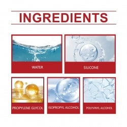 Our balloon gloss spray contains isopropyl alcohol, polyvinyl alcohol.