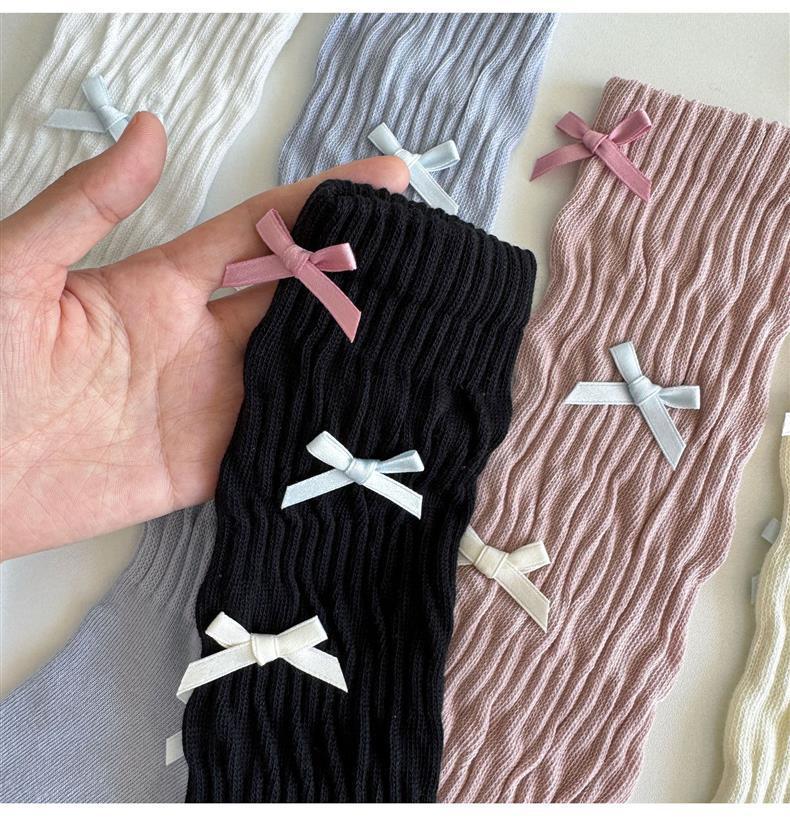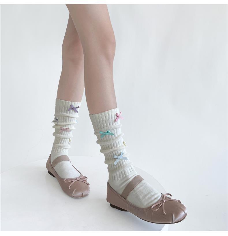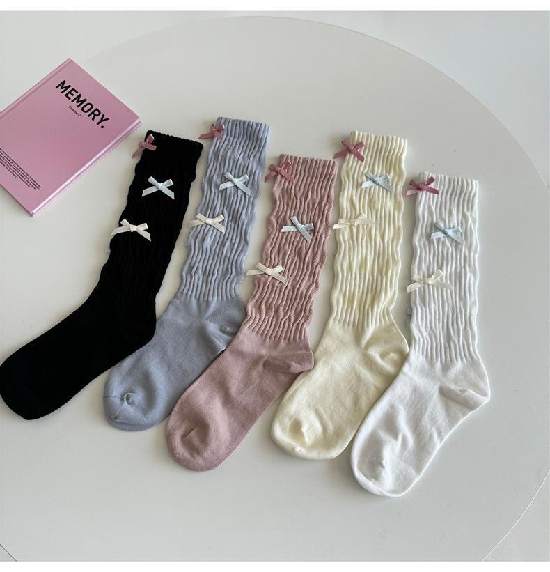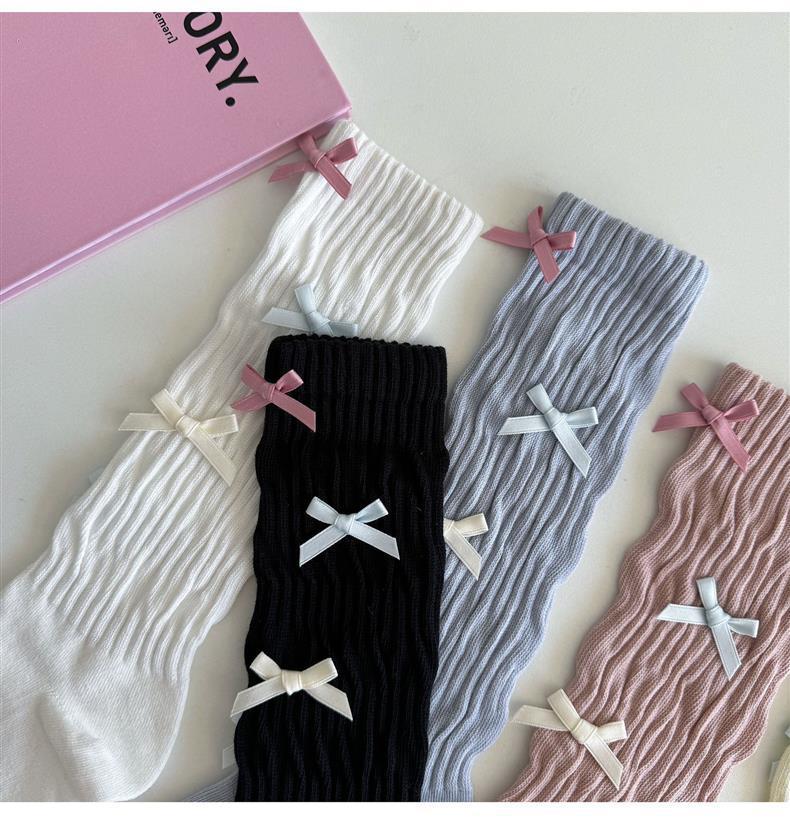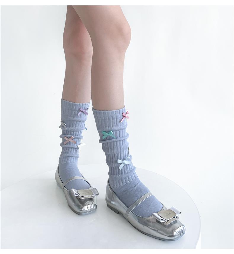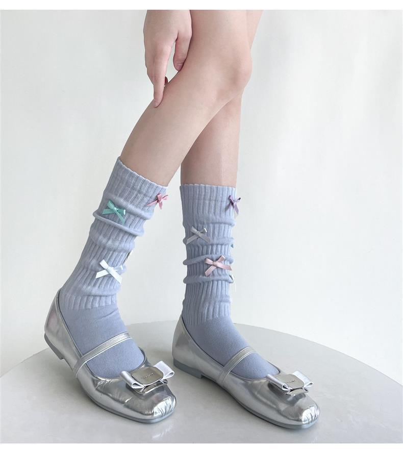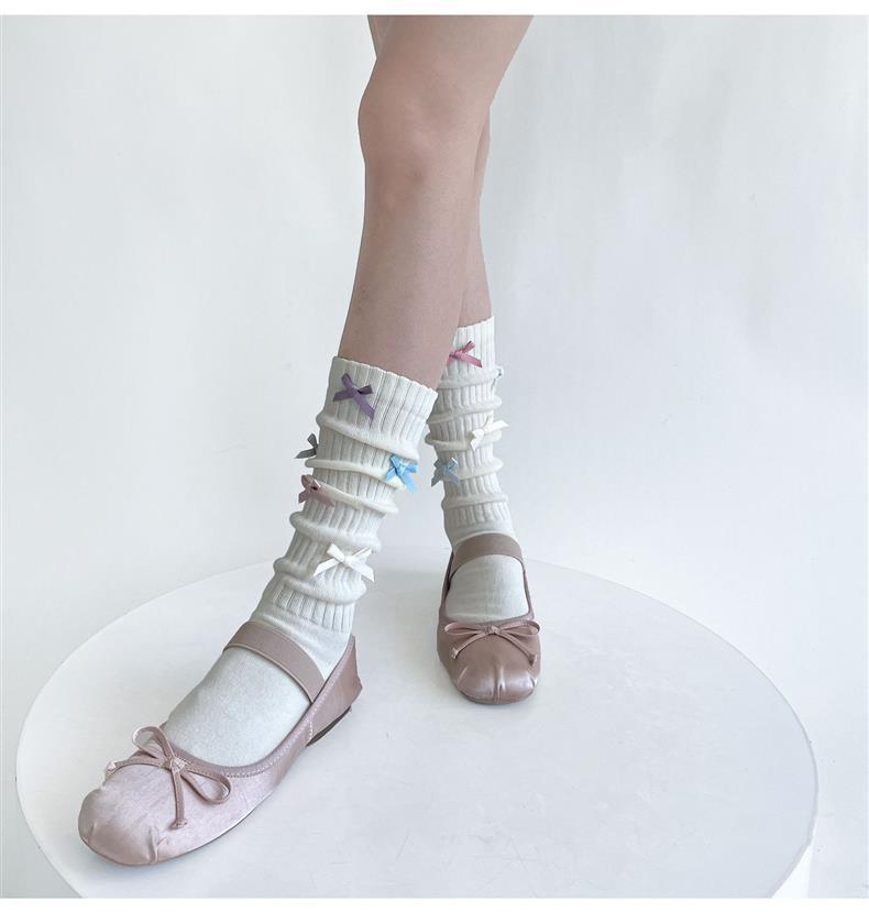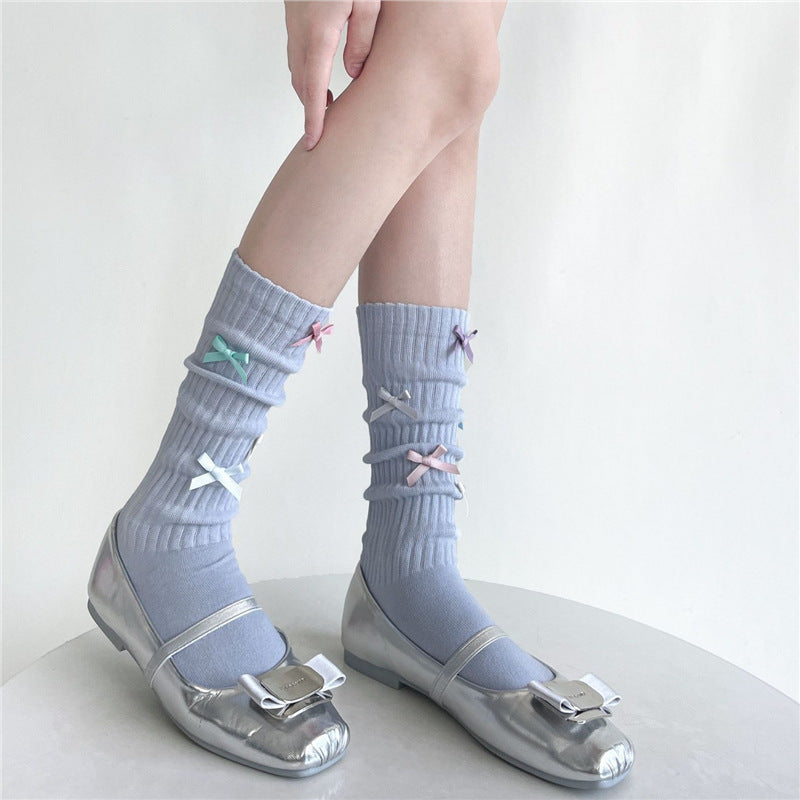 Candy-colored Bow Pile Style Calf Socks Women's Handmade Tube Socks