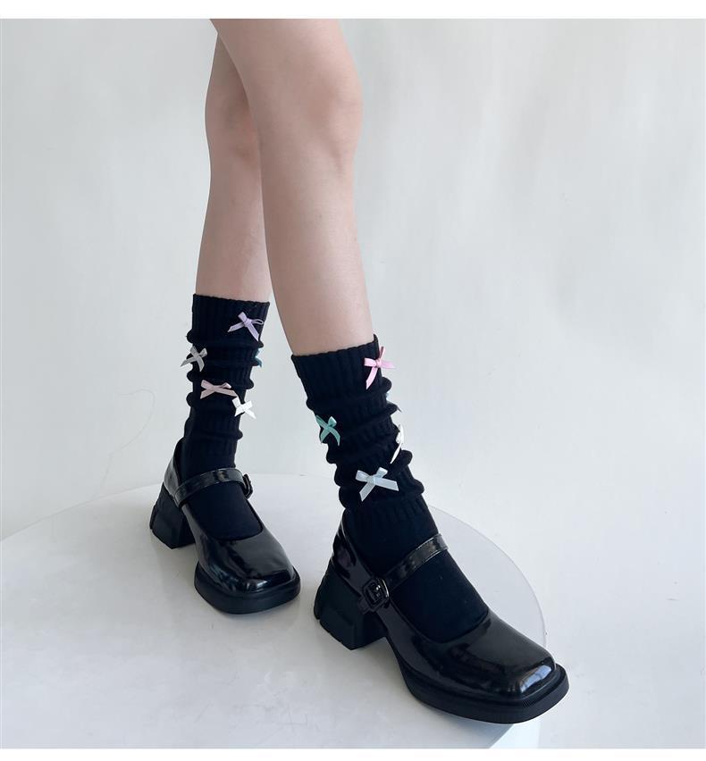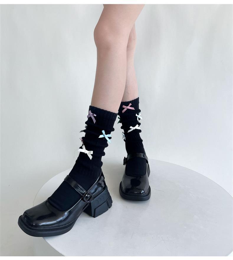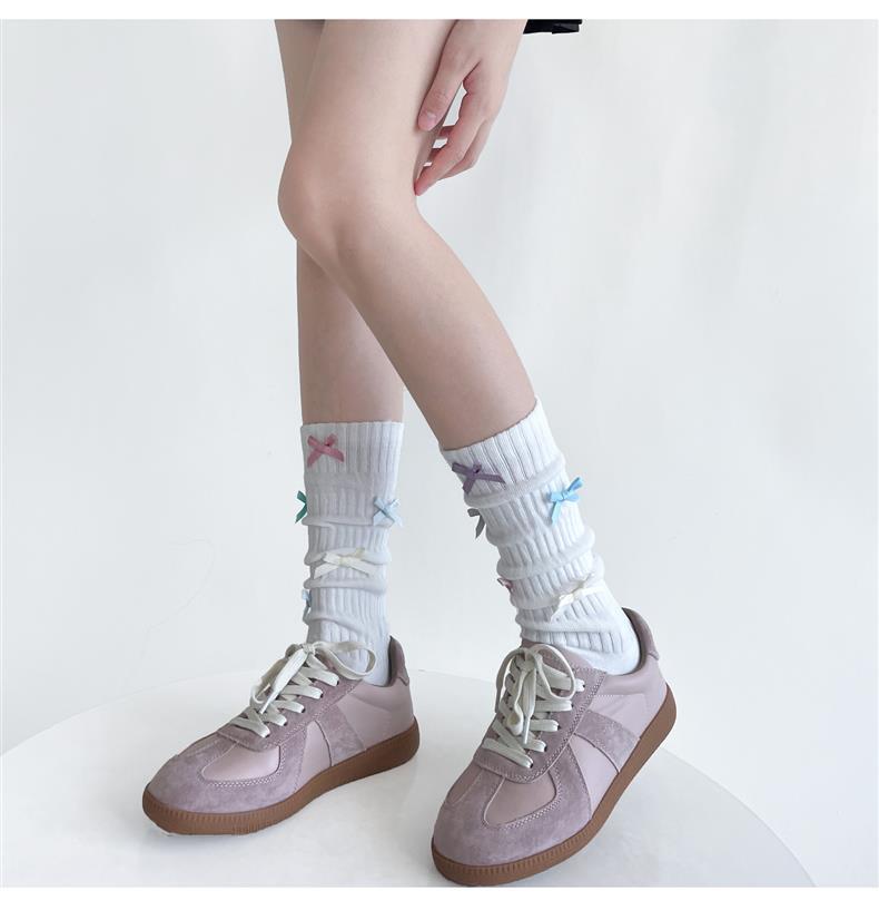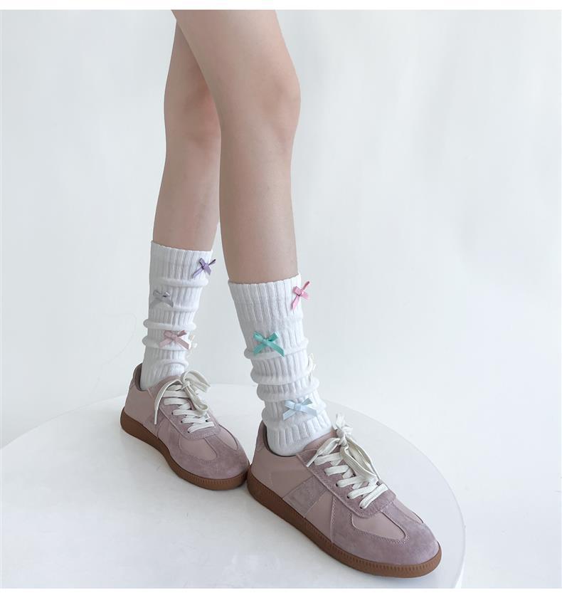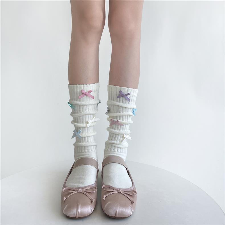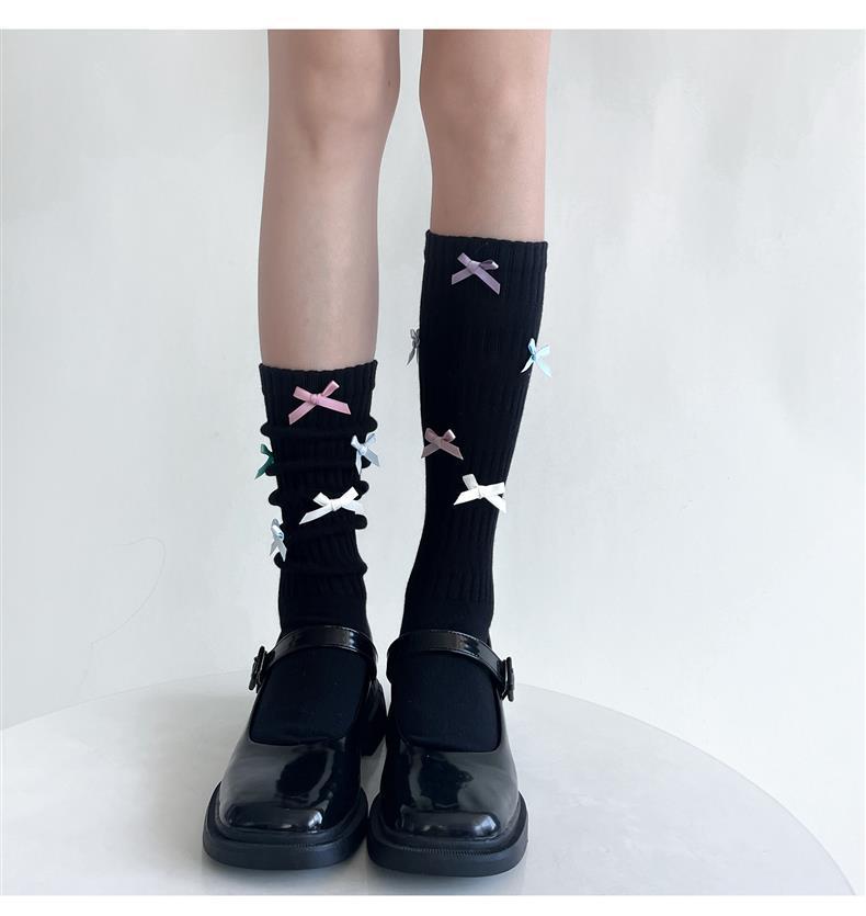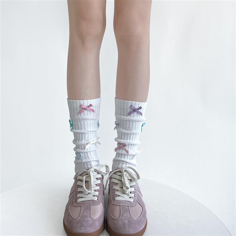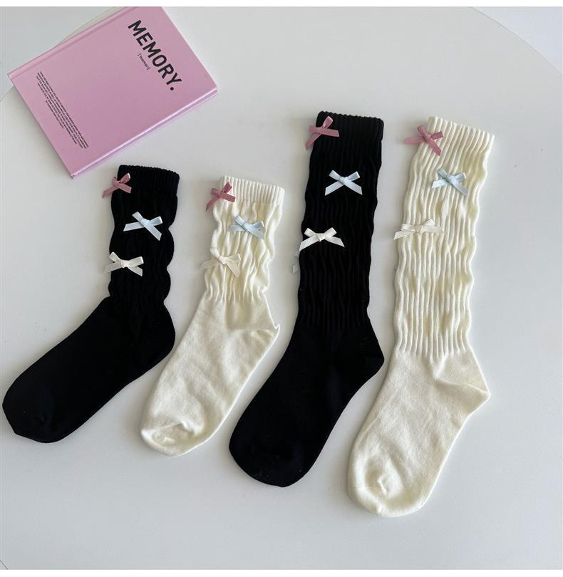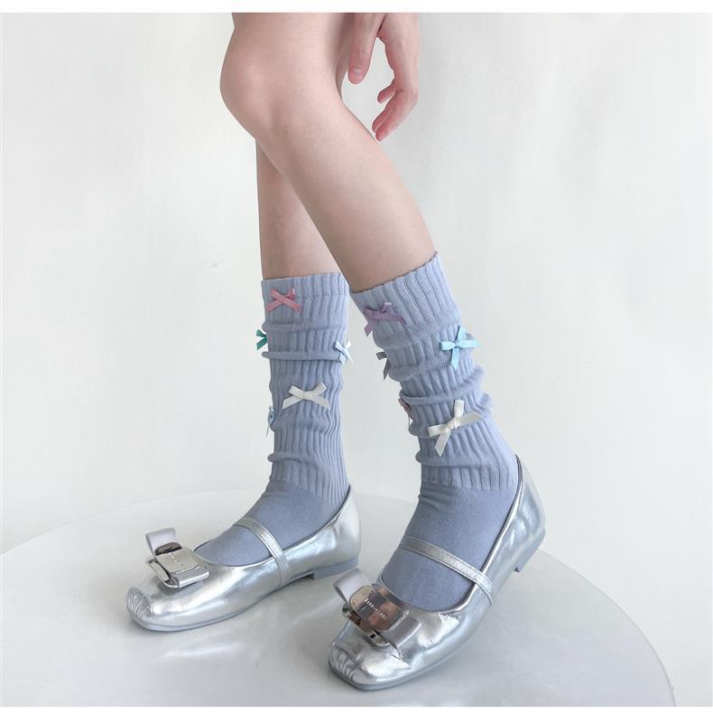 Candy-colored Bow Pile Style Calf Socks Women's Handmade Tube Socks
