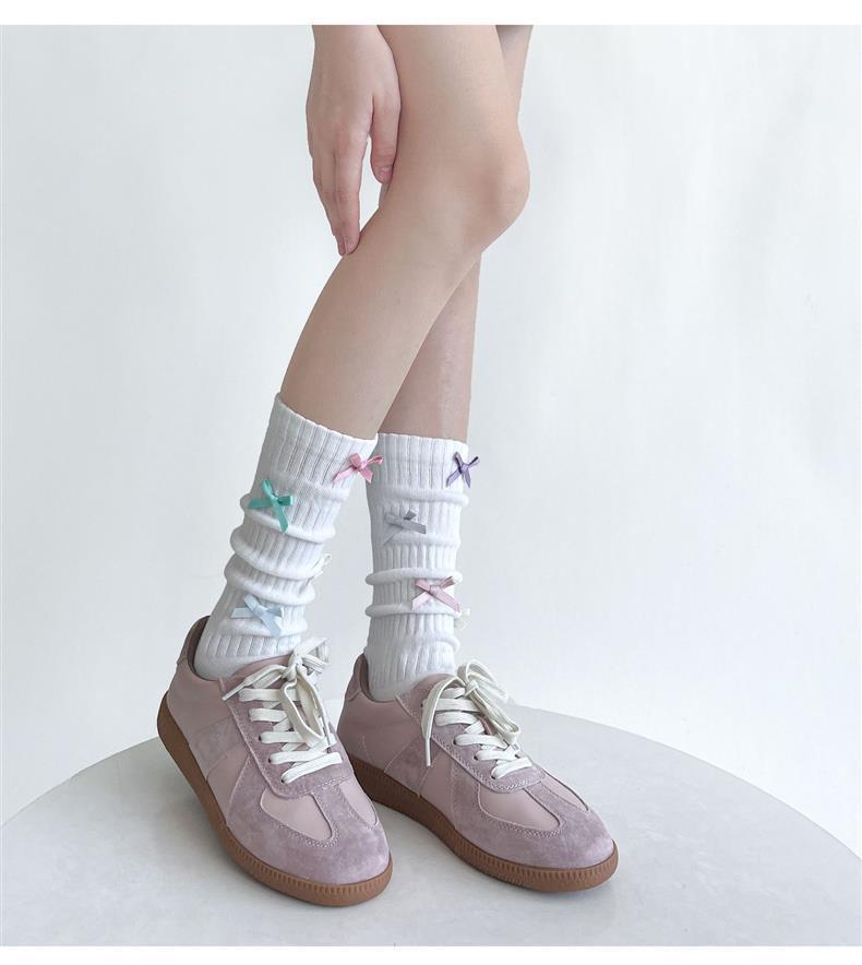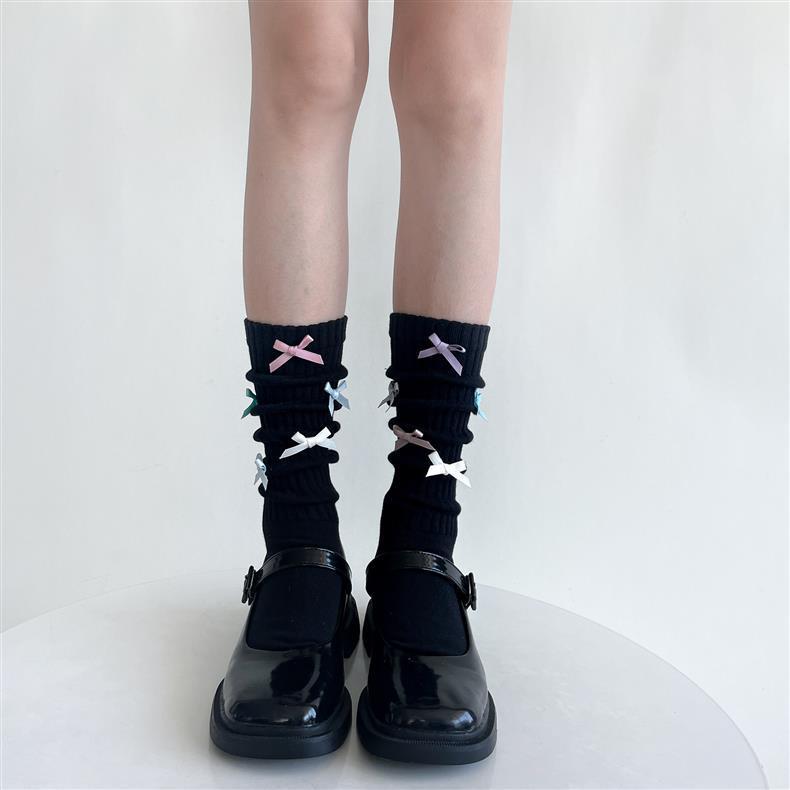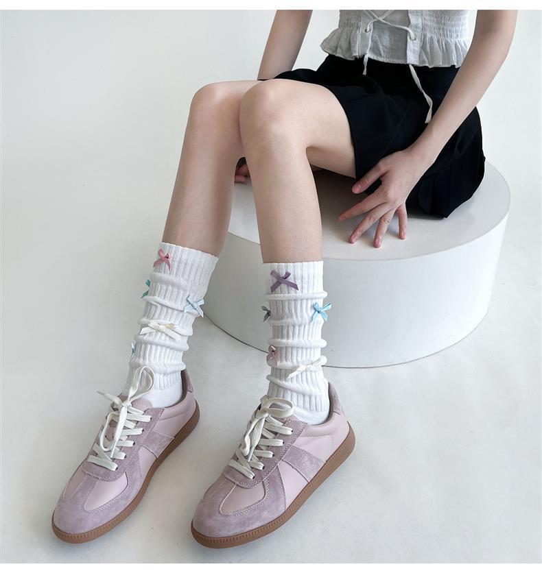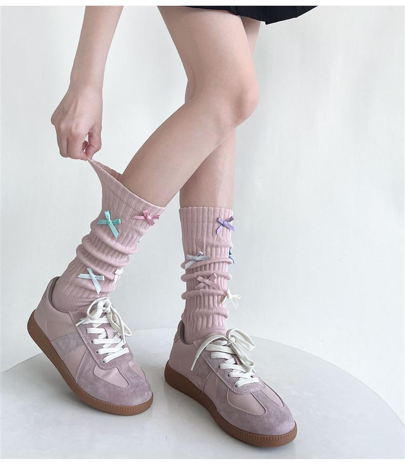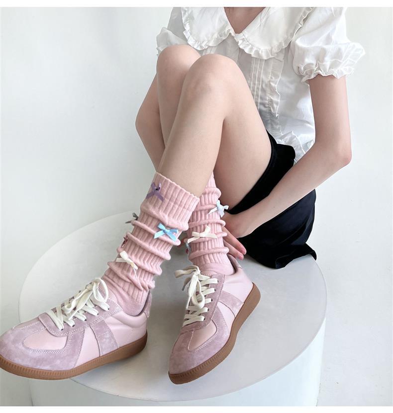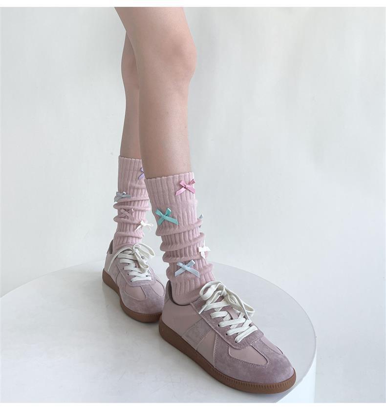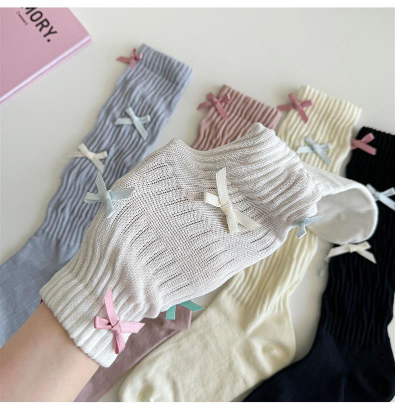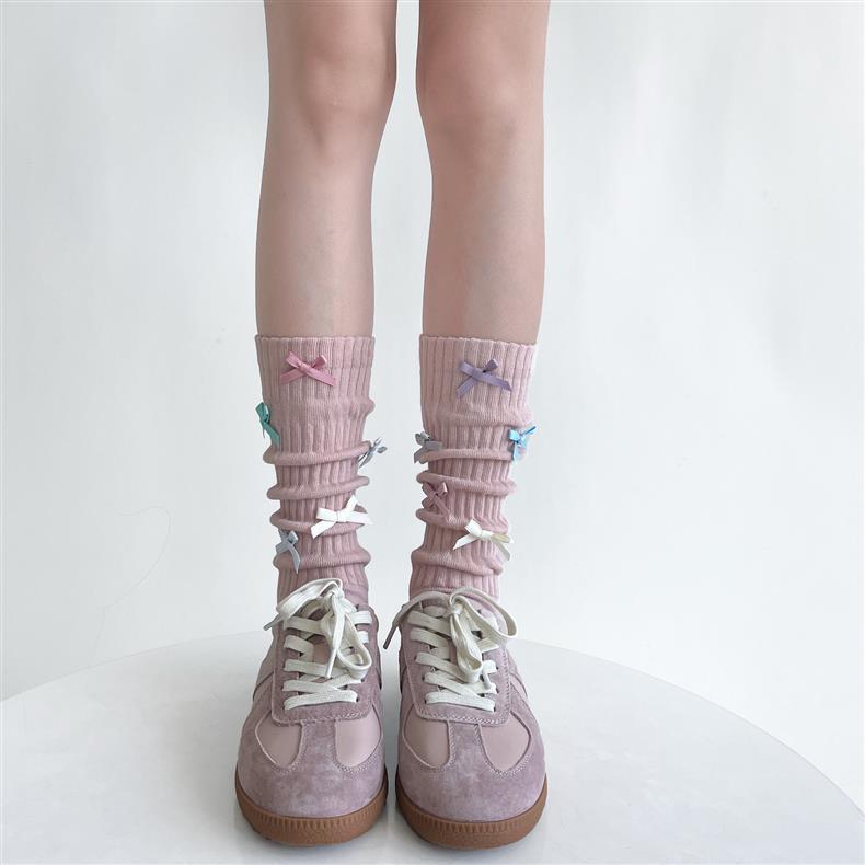 Candy-colored Bow Pile Style Calf Socks Women's Handmade Tube Socks
