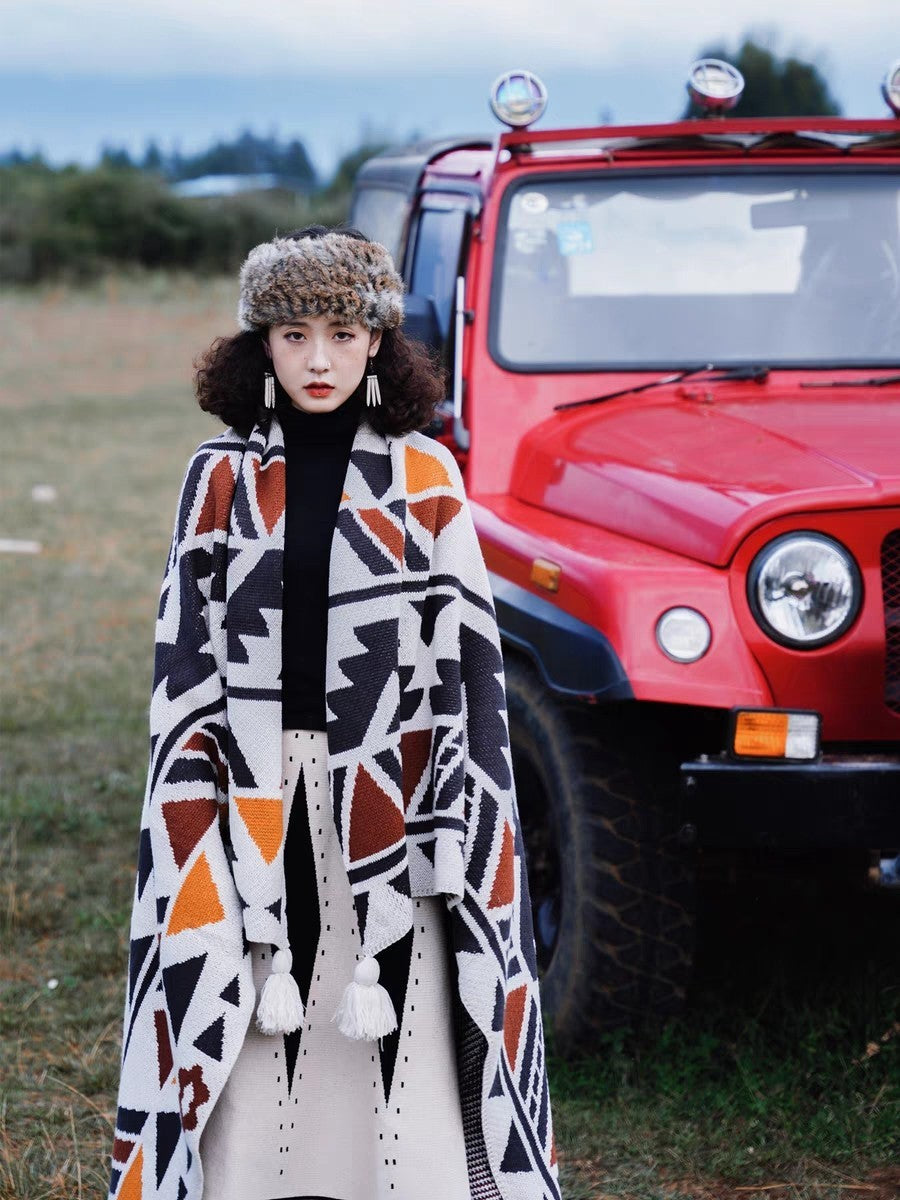 Casual Bohemian Knitted Shawl Ethnic Style Photo Cape Women's Scarf