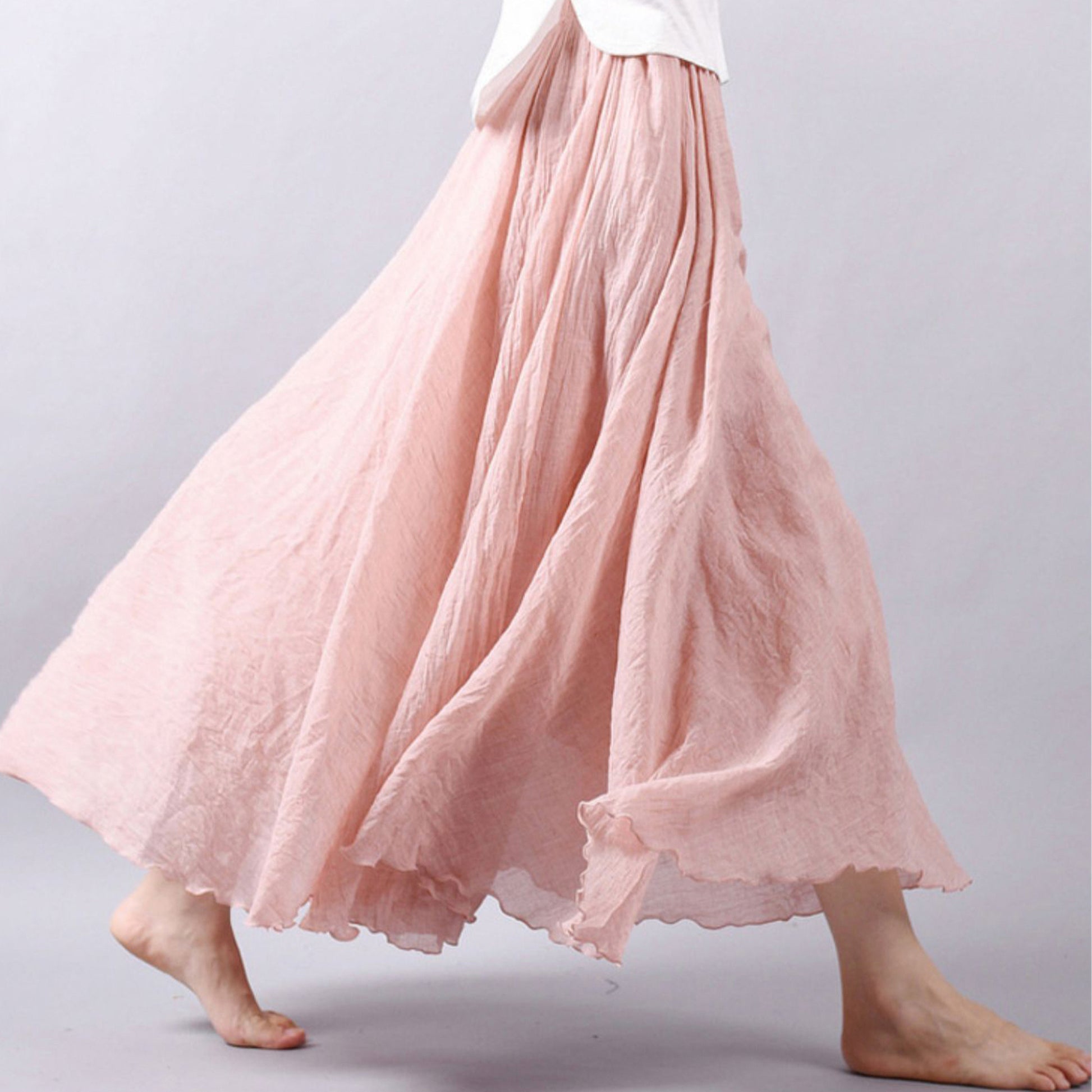 Cotton Linen Style Skirt, Soft And Flowing Skirt, Travel Skirt, Beach Skirt, Gift For Daughter, Pink Skirt, Custom Size