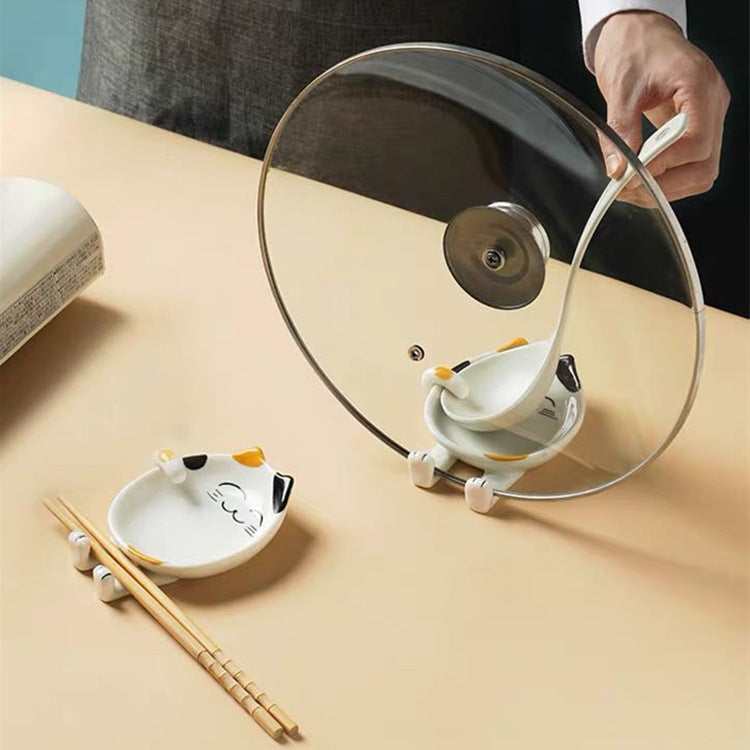 Creative Cartoon Ceramic Pot Cover Chopsticks Spoon Holder