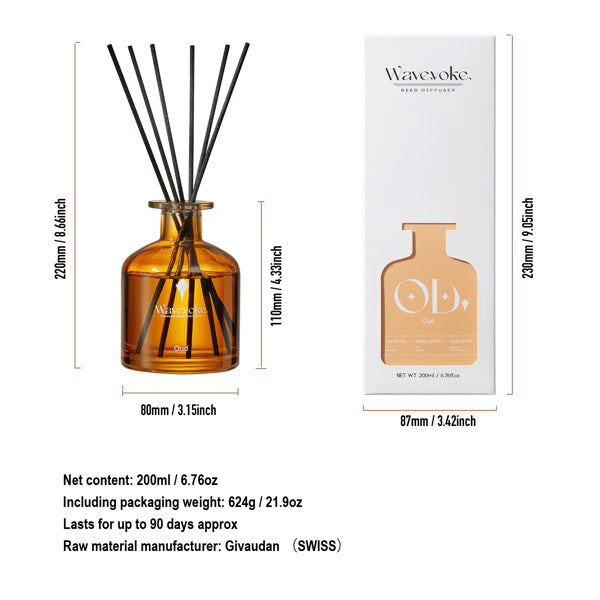 -INCLUDES : One glass bottle of fragrance diffuser oil 6.76ounce and fiber reed stick 8pcs.Adjust the amount of aroma released by adding or removing the sticks.