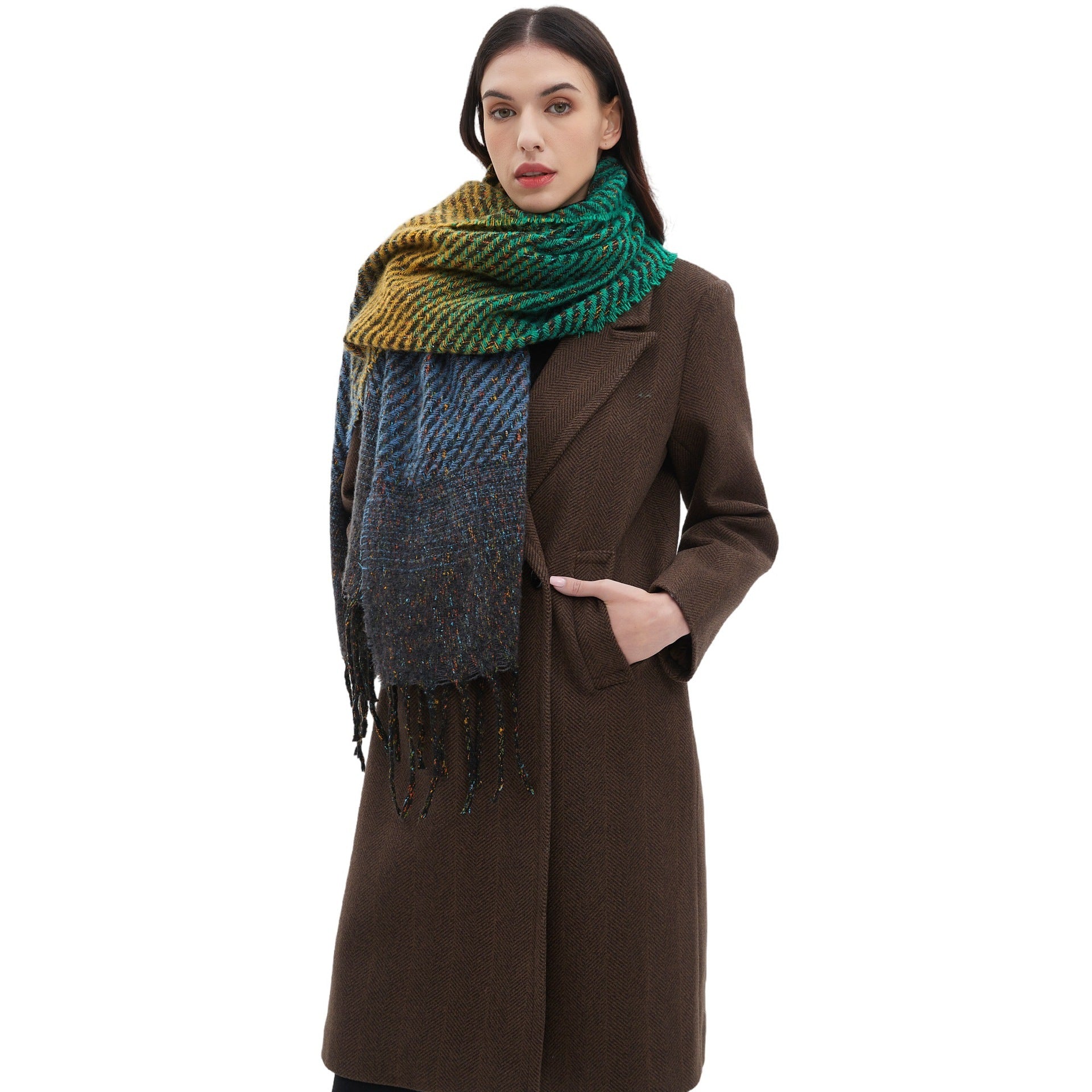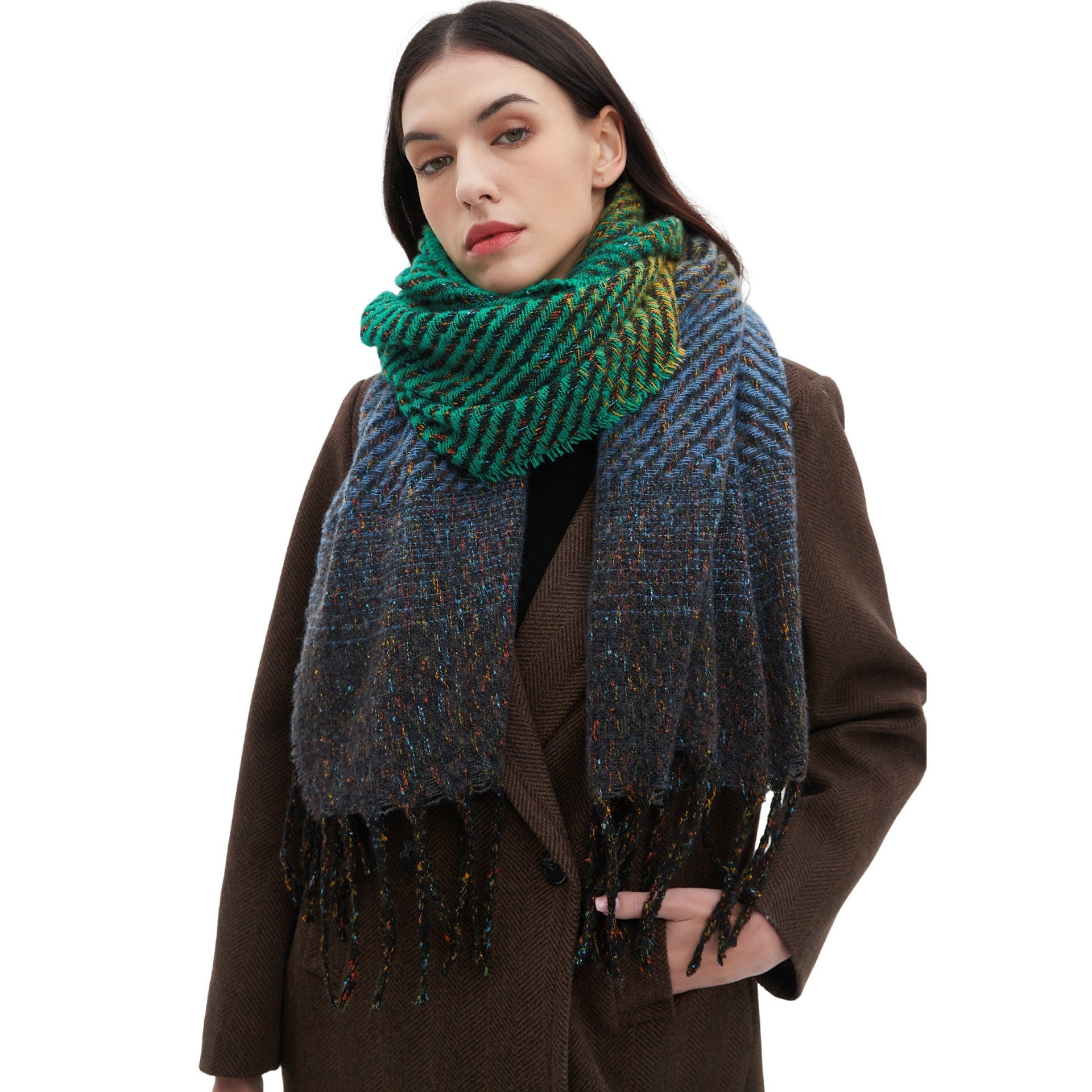 European And American Ladies Shawl Gradient Color Tassel Scarf