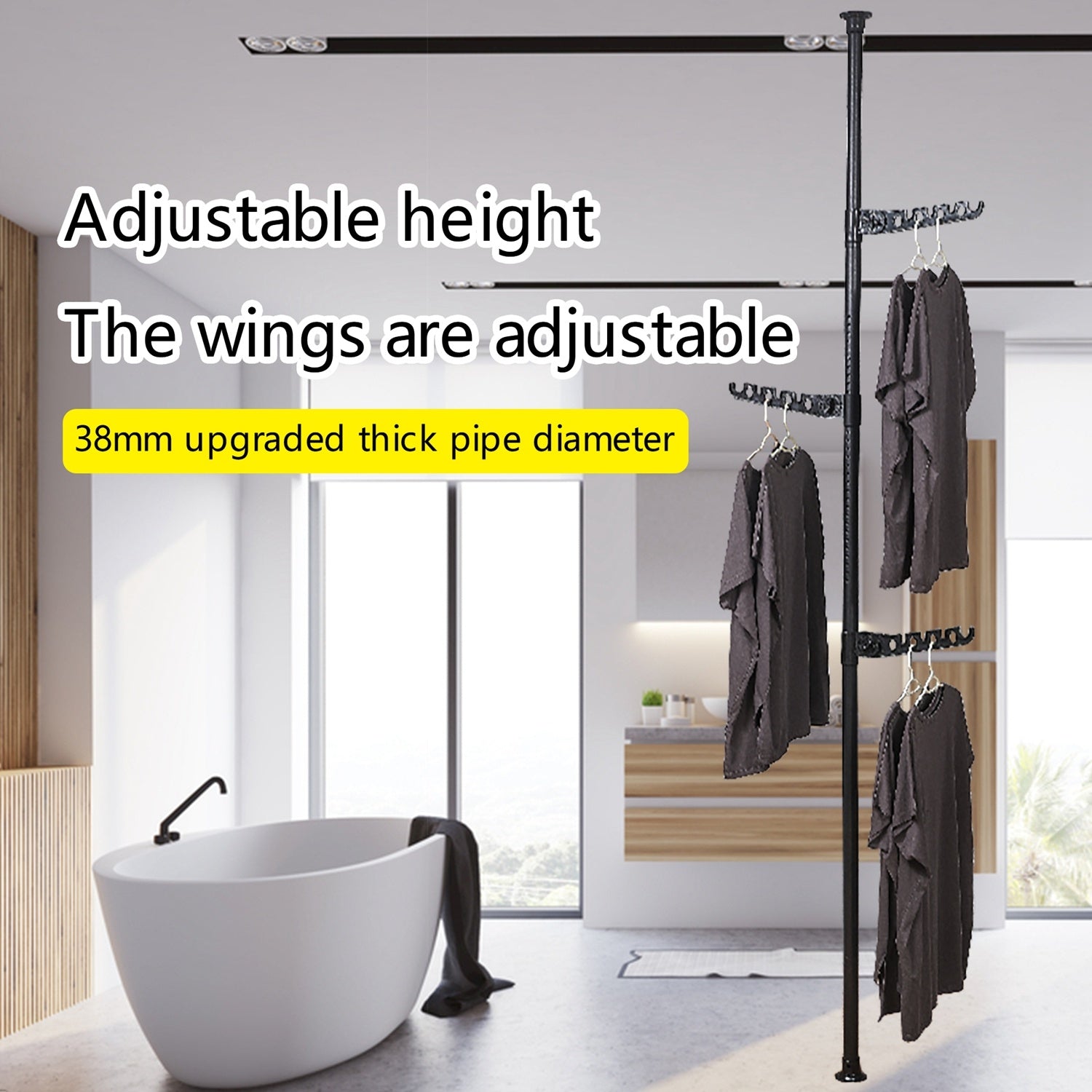 WIDE RANGE OF APPLICATIONS: Our adjustable coat hanger standing can be used in any corner or limited space, thus saving a lot of space. It's perfect for living rooms, bedrooms, storage rooms, laundry rooms, retail stores, RVs, balconies, window sills, bathrooms, etc. Additionally, you can use it to hang plants, curtains, bicycles, or surfboards. This versatile coat hanger is ideal for anyone looking to maximize their space. Whether you need a cowboy hat rack for your hats or a standing coat rack tree for your jackets, this product meets all your needs efficiently and stylishly.
