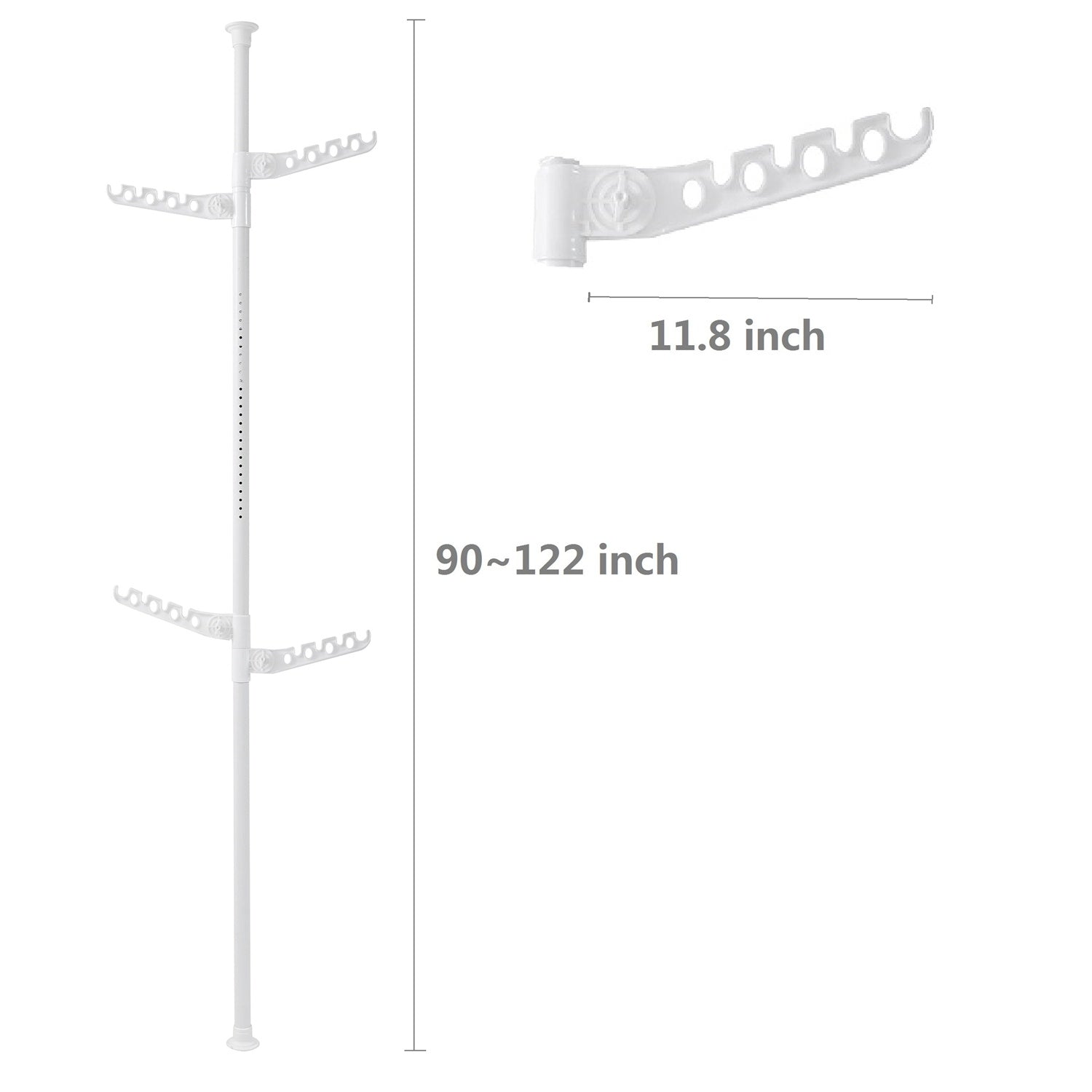 ADJUSTABLE SIZE: Our versatile coat hanger stand offers customizable height options, ranging from 65 inches to 124 inches vertically. Additionally, the inclusion of 6 adjustable hooks on the side ensures effortless accommodation of garments of varying lengths. Whether it's a bulky winter coat or a delicate dress, our coat rack stand provides ample space without touching the floor. The vertical rods are thoughtfully designed with springs, allowing for easy extension or contraction based on your needs. With these features, our coat rack, alongside the hat stand, guarantees a tailored storage solution for your wardrobe essentials.