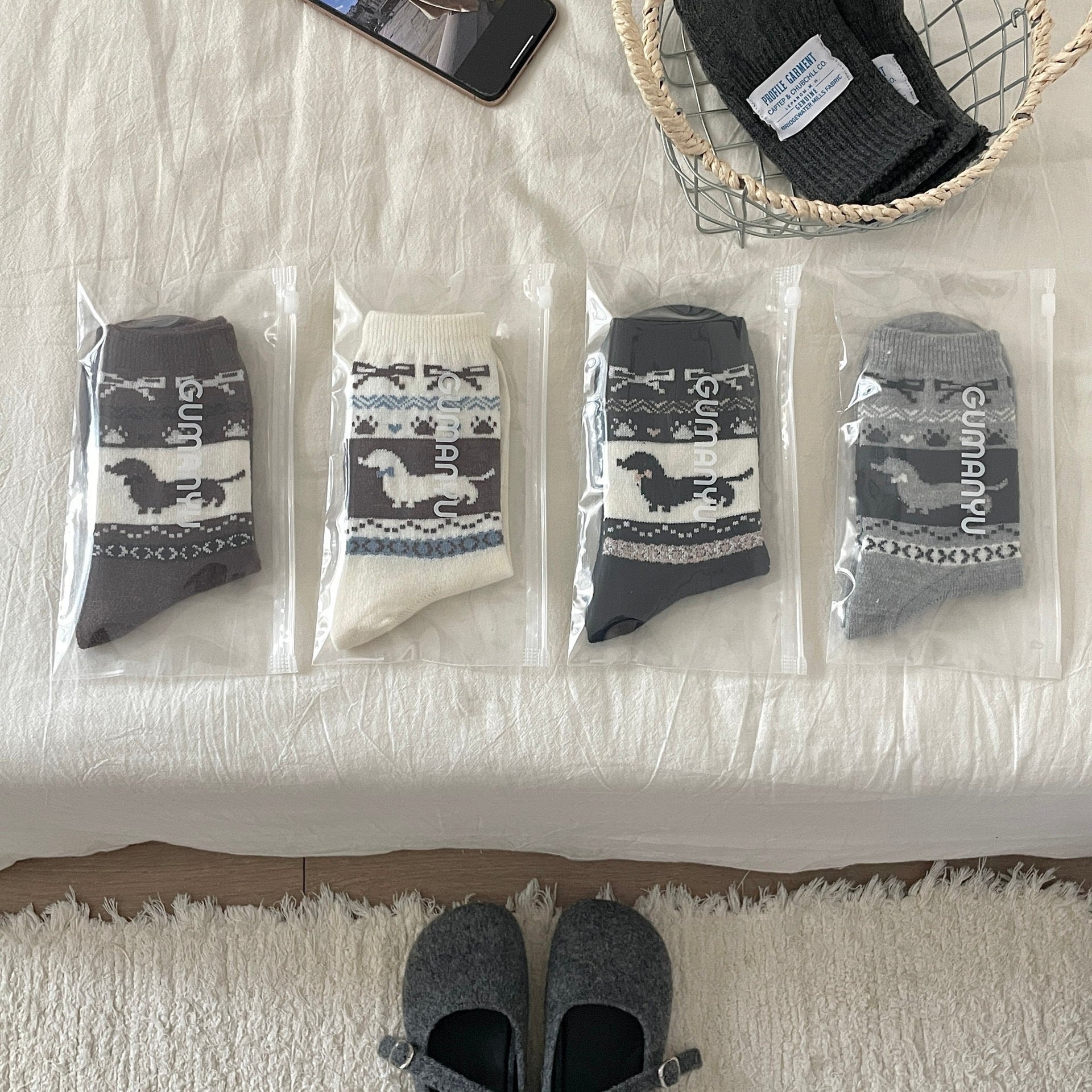 Fair Island Sausage Dog Cute Mid-calf Length Socks Wool Socks