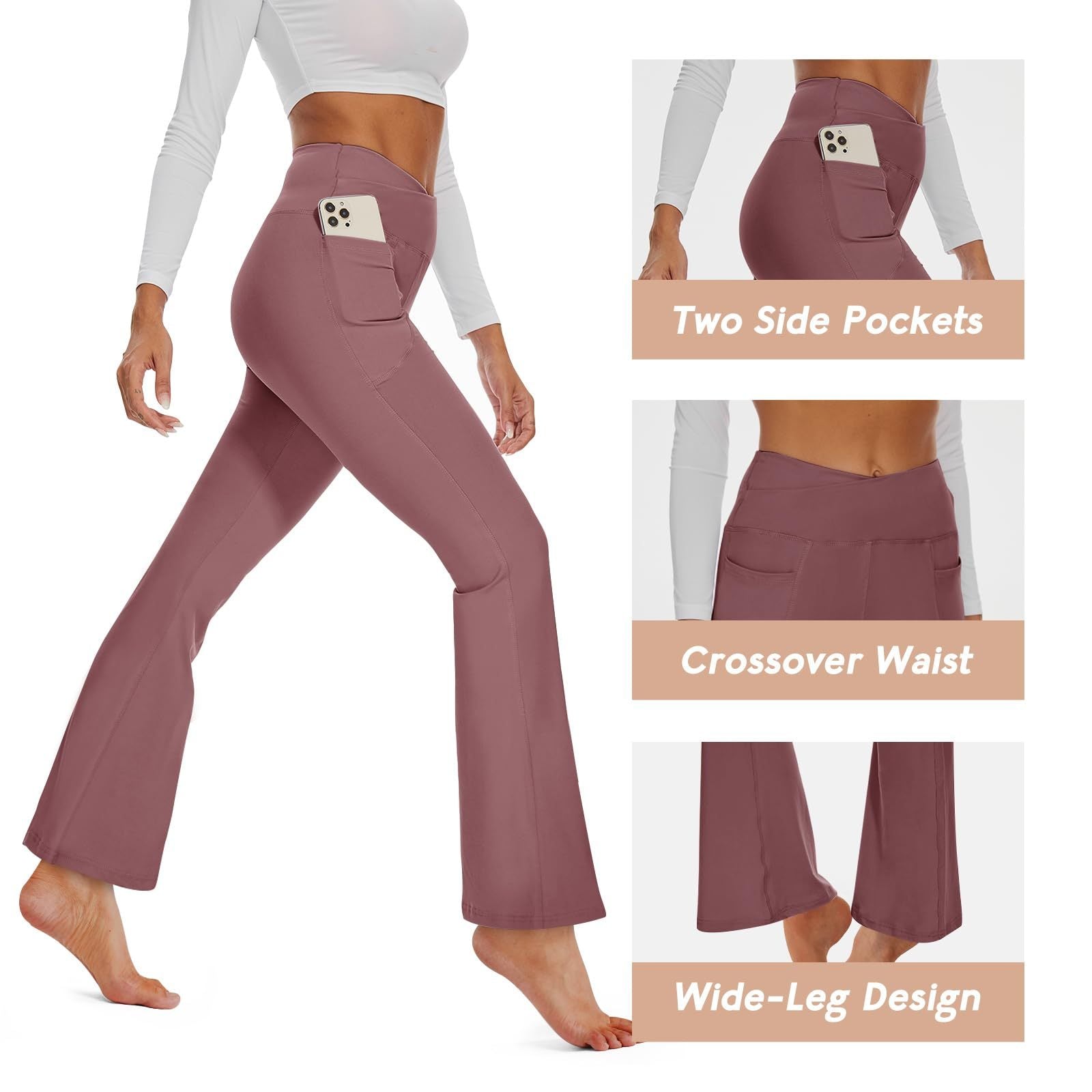 Flared Pants - Cropped Crossover Waist Pockets In Solid Crimson
