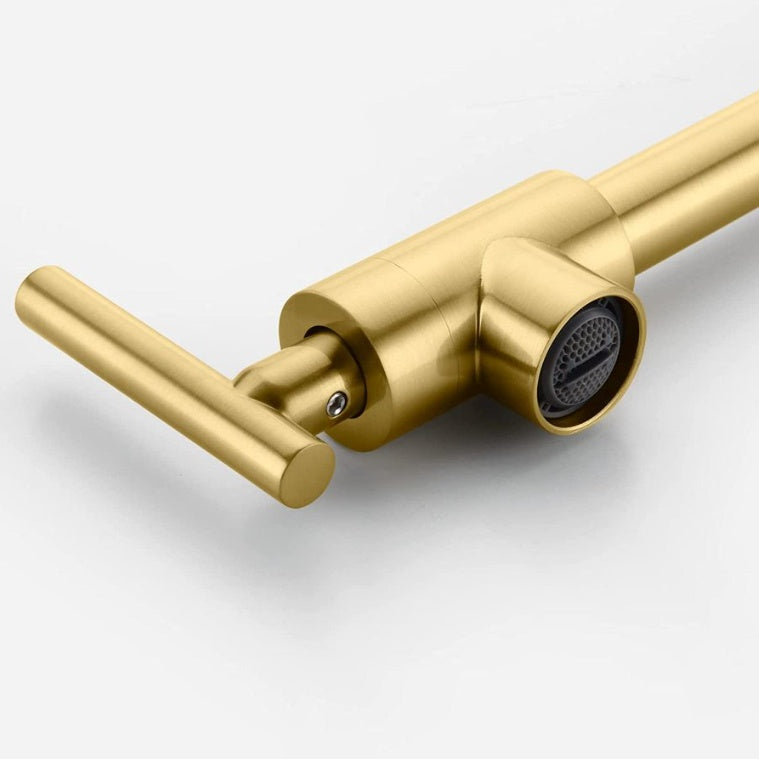 Gold Pot Filler Faucet Wall Mount Kitchen Folding Faucet With Double Joint Swing Arms, Two Handle Design