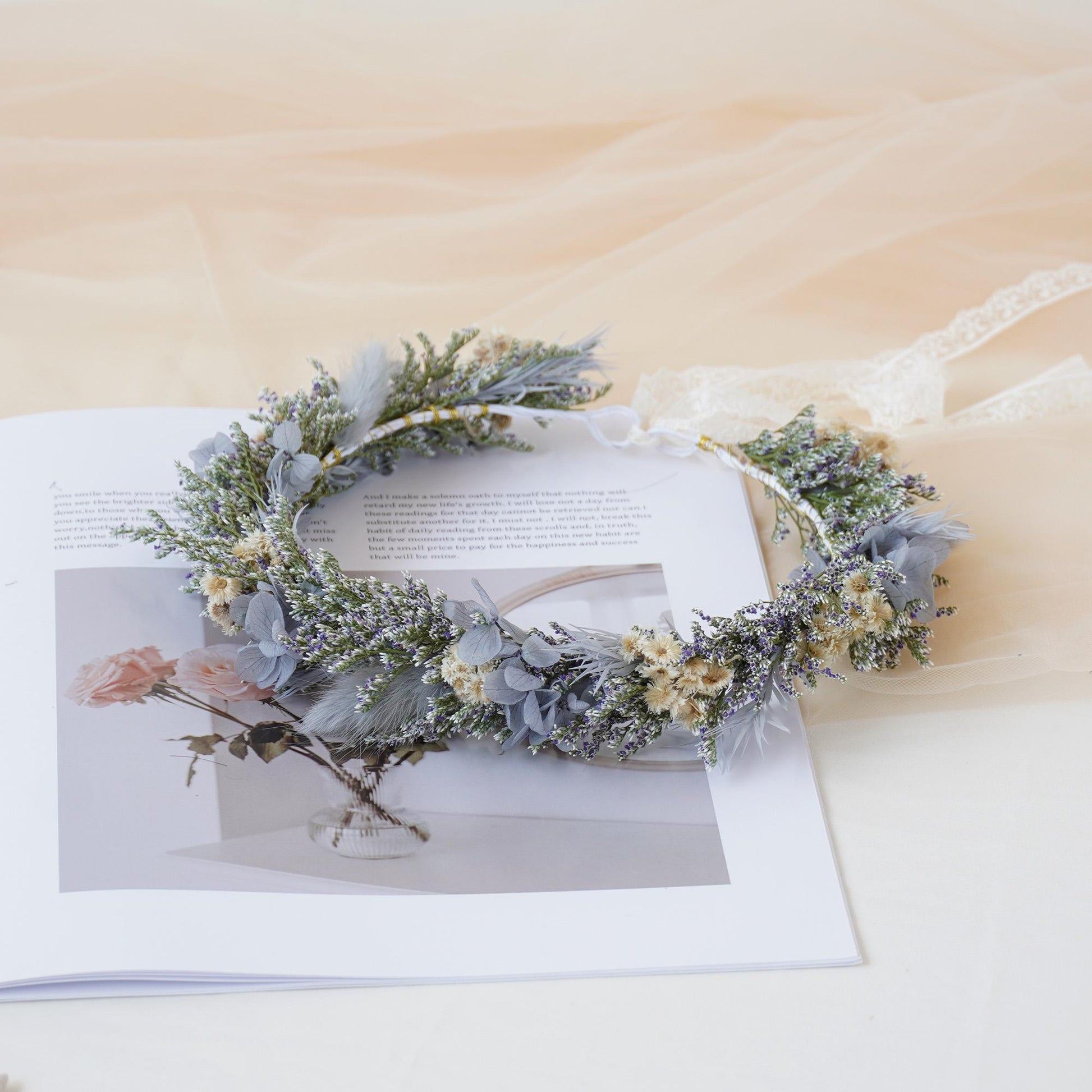 Handmade Natural Dried Flower Corsage Starry Crown Bride Wedding Party Birthday Adult Children's Headdress