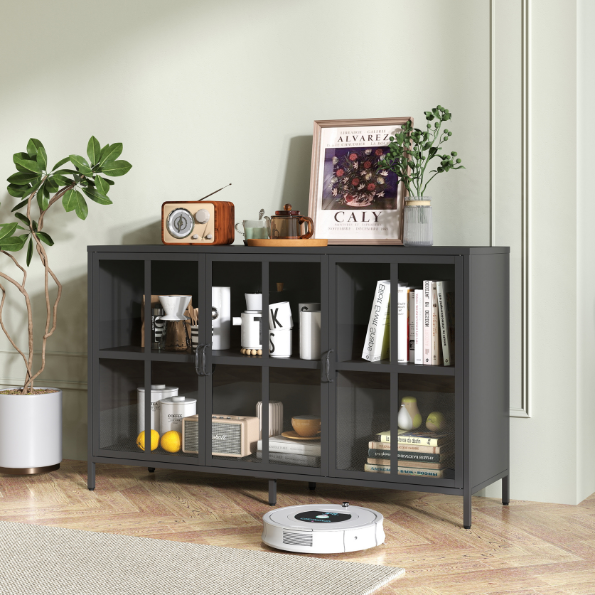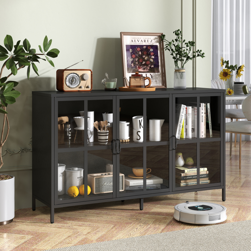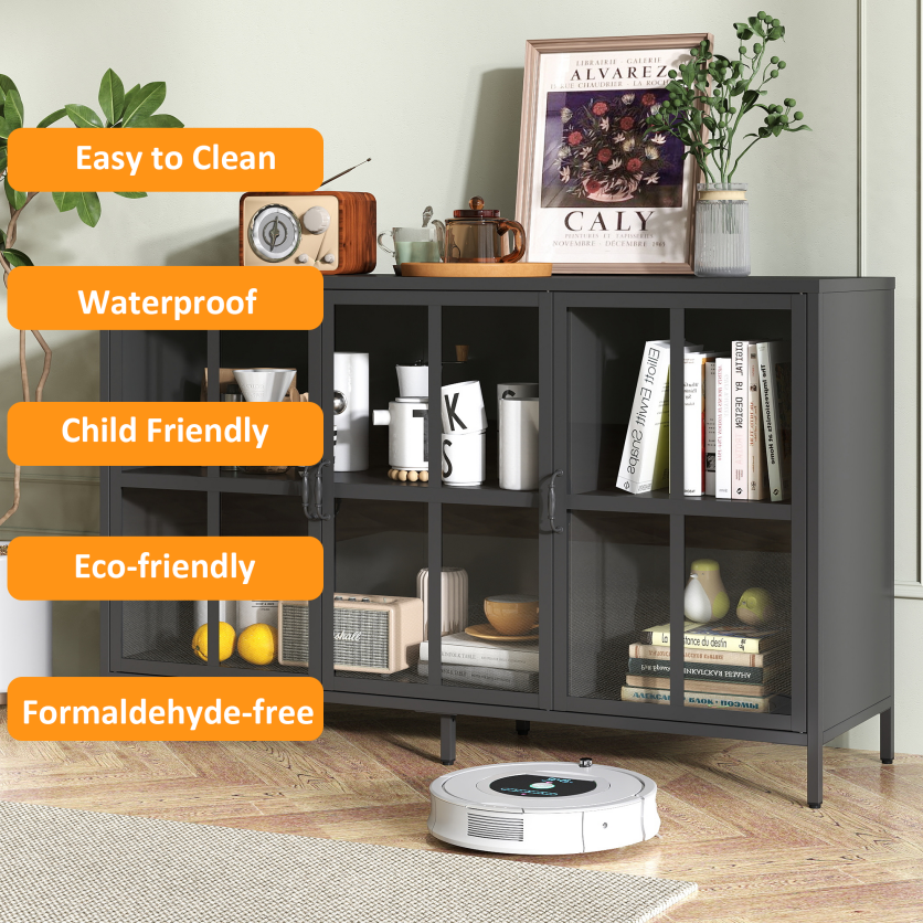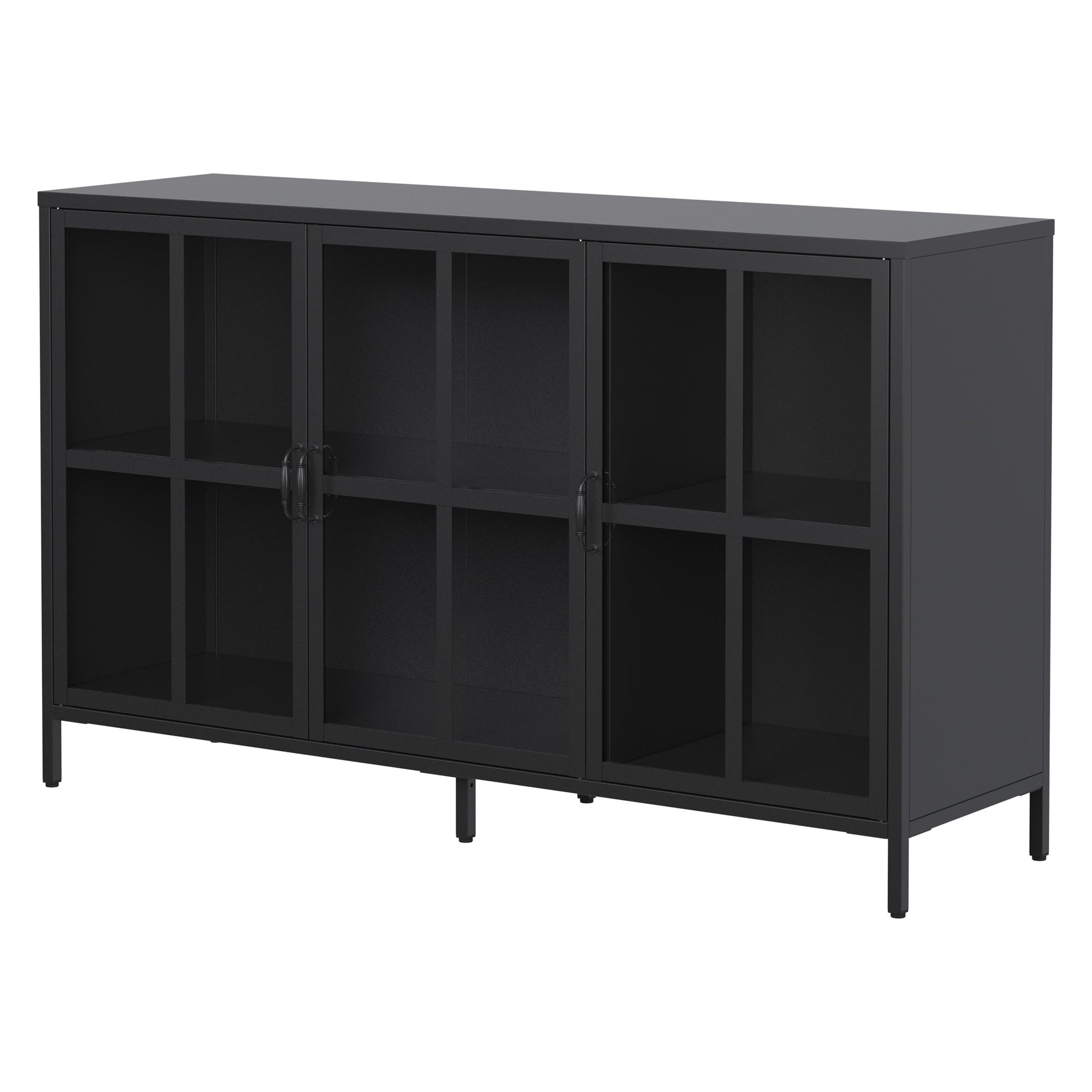 Heavy Duty Metal Modern Sideboard Buffet Cabinet With Storage Premium Steel Storage Cabinet ,Adjustable Feet,Glass Doors,Large Capacity Organizer For Living Room,Bed Room,Dining Room