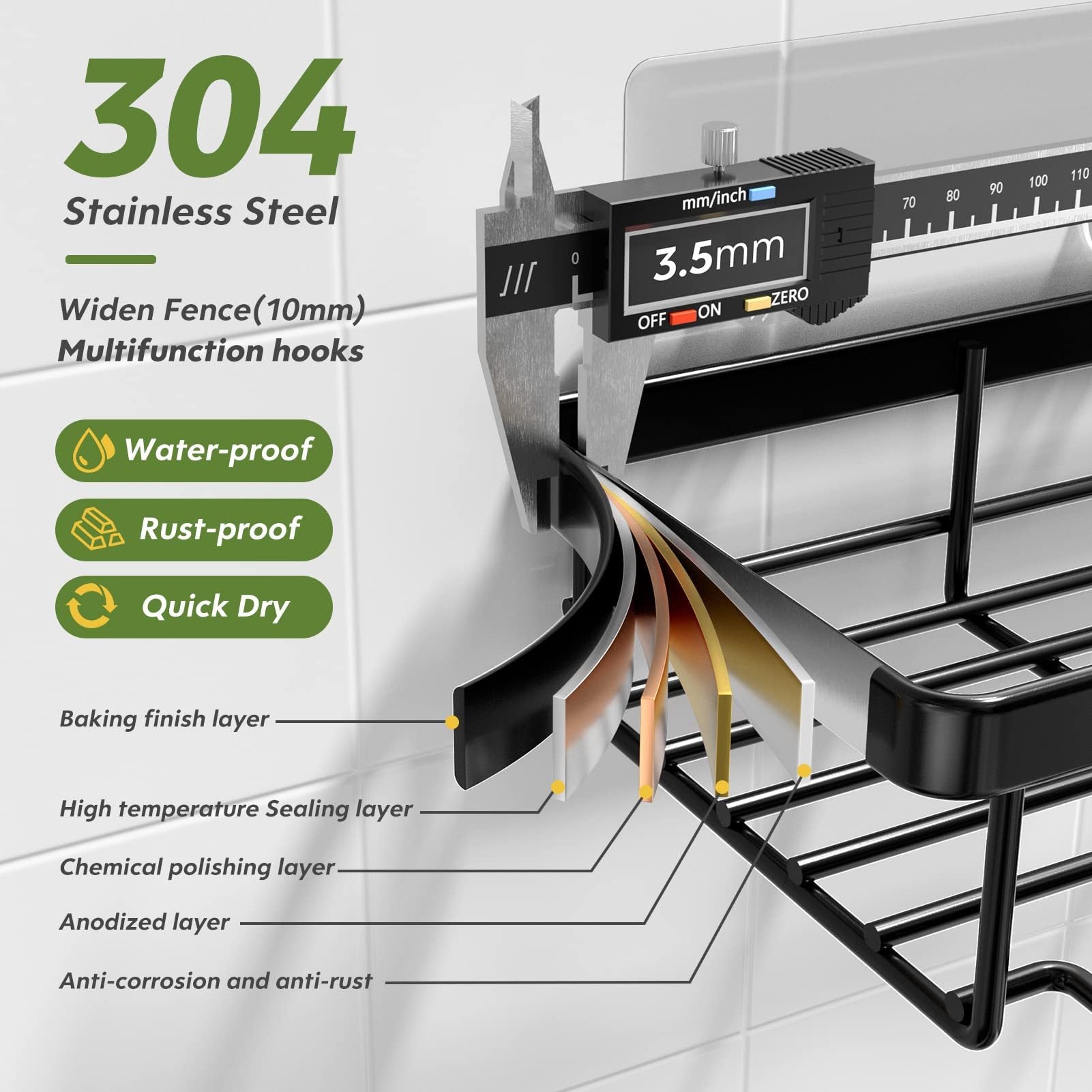 Heavy-duty Wall-mounted Shower Shelf Storage Accessories, Including Soap Dish And Toothbrush Holder, Suitable For Bathroom, Home And Kitchen, Black