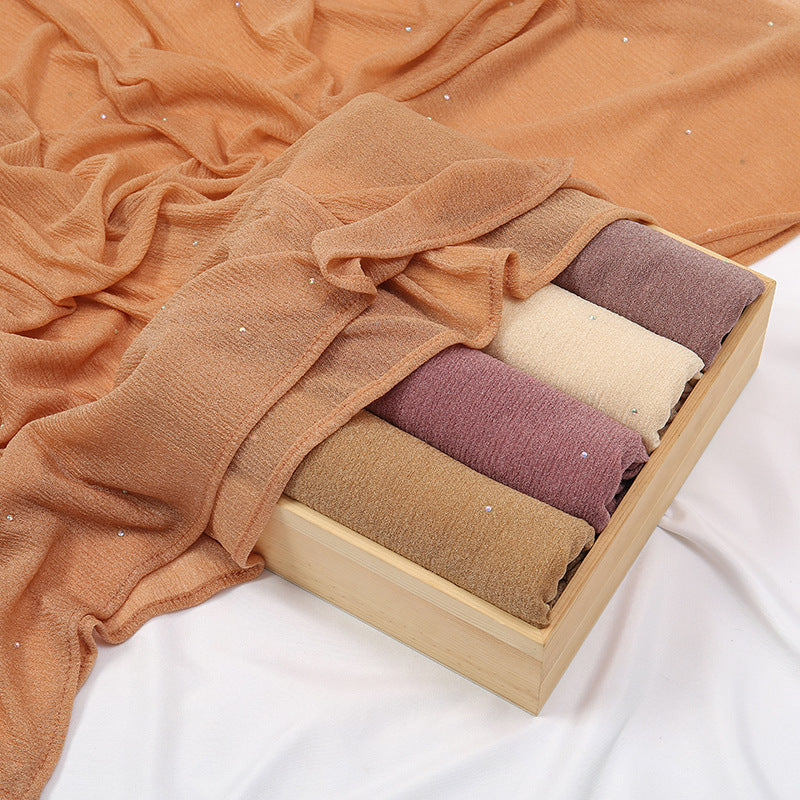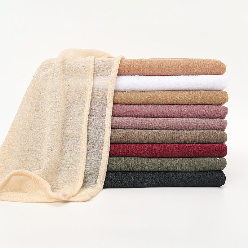 Hemp Wrinkle Starry Hot Rhinestone Headscarf Female Pleated