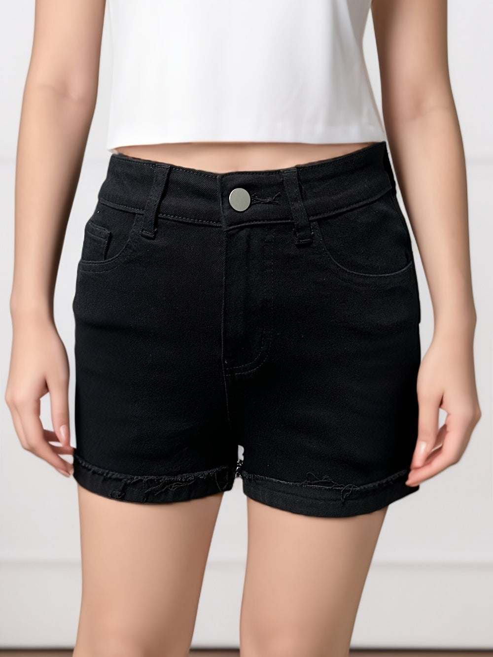 Hip Lifting Elastic Frayed Edge Denim Shorts Retro Tik Tok Popular Shorts Body Shaper With Pockets, Trendy Pattern Design High Waist Forbidden Platform - Temu