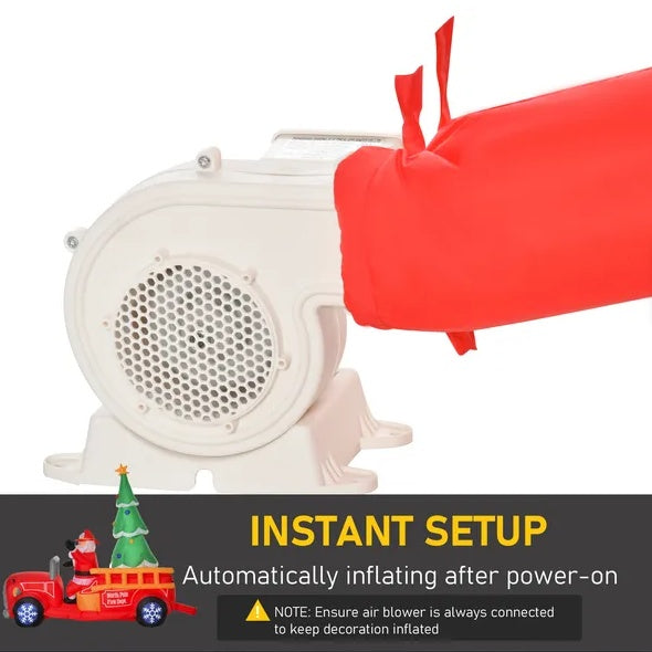 HOMCOM 7.5ft Christmas Inflatable Santa Claus Driving A Fire Truck With Tree, Outdoor Blow-Up Yard Decoration With LED Lights Display