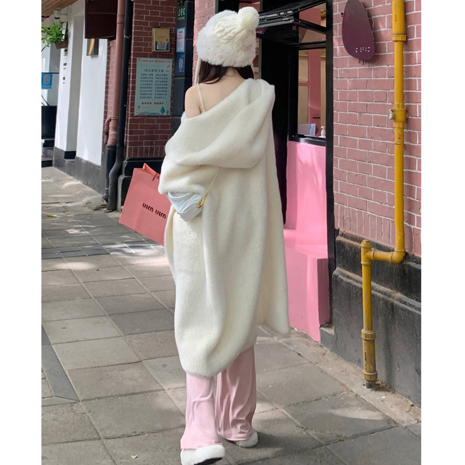 Hooded Fur Cardigan Coat Women's Spring Clothes, Thick Gentle Long Knitted Coat Handmade Clothing Hand Knit Outfit Of The Day