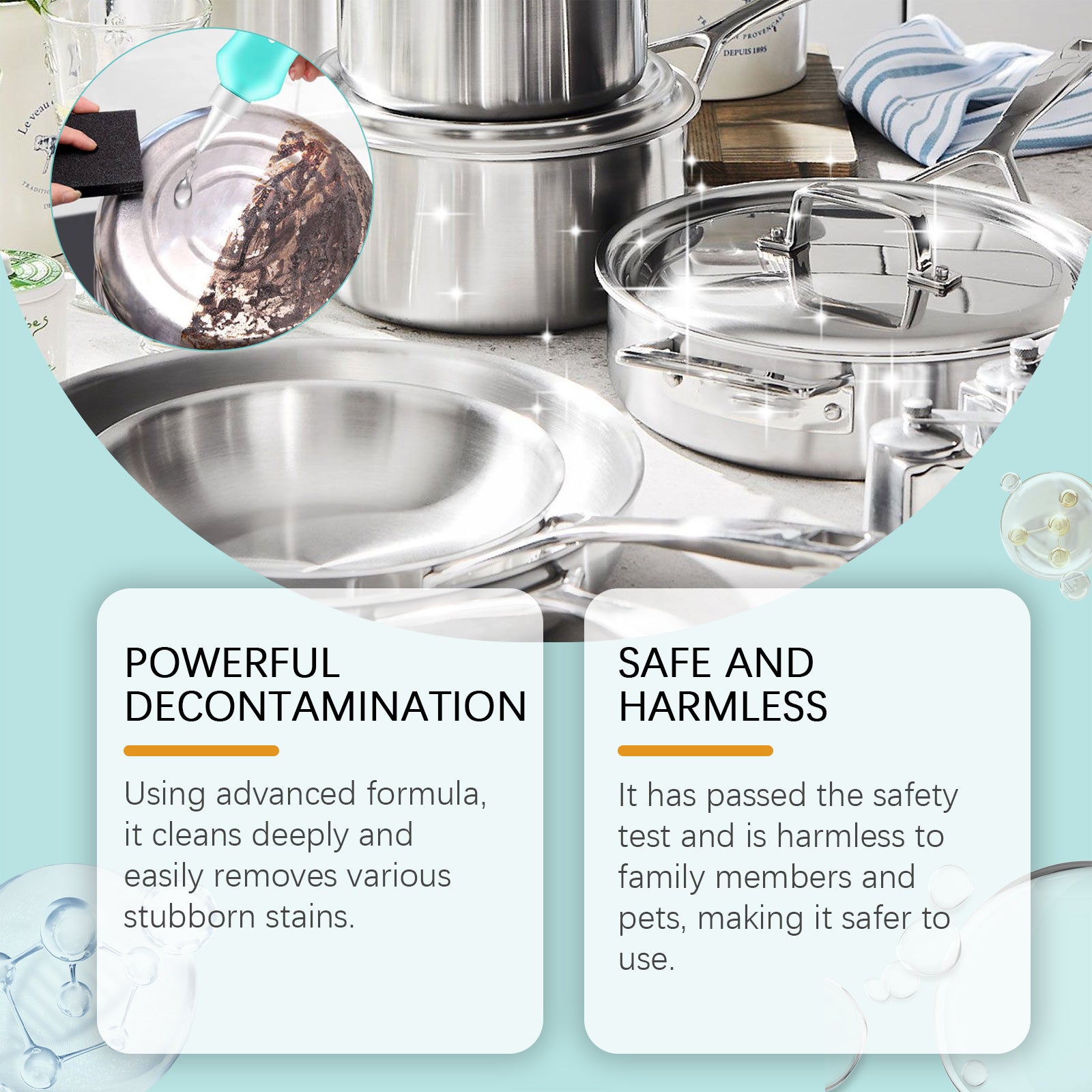 After use, it helps to fully dissolve the stubborn black dirt on the bottom of the pot, while keeping various kitchen utensils clean and making POTS and pans bright as new.