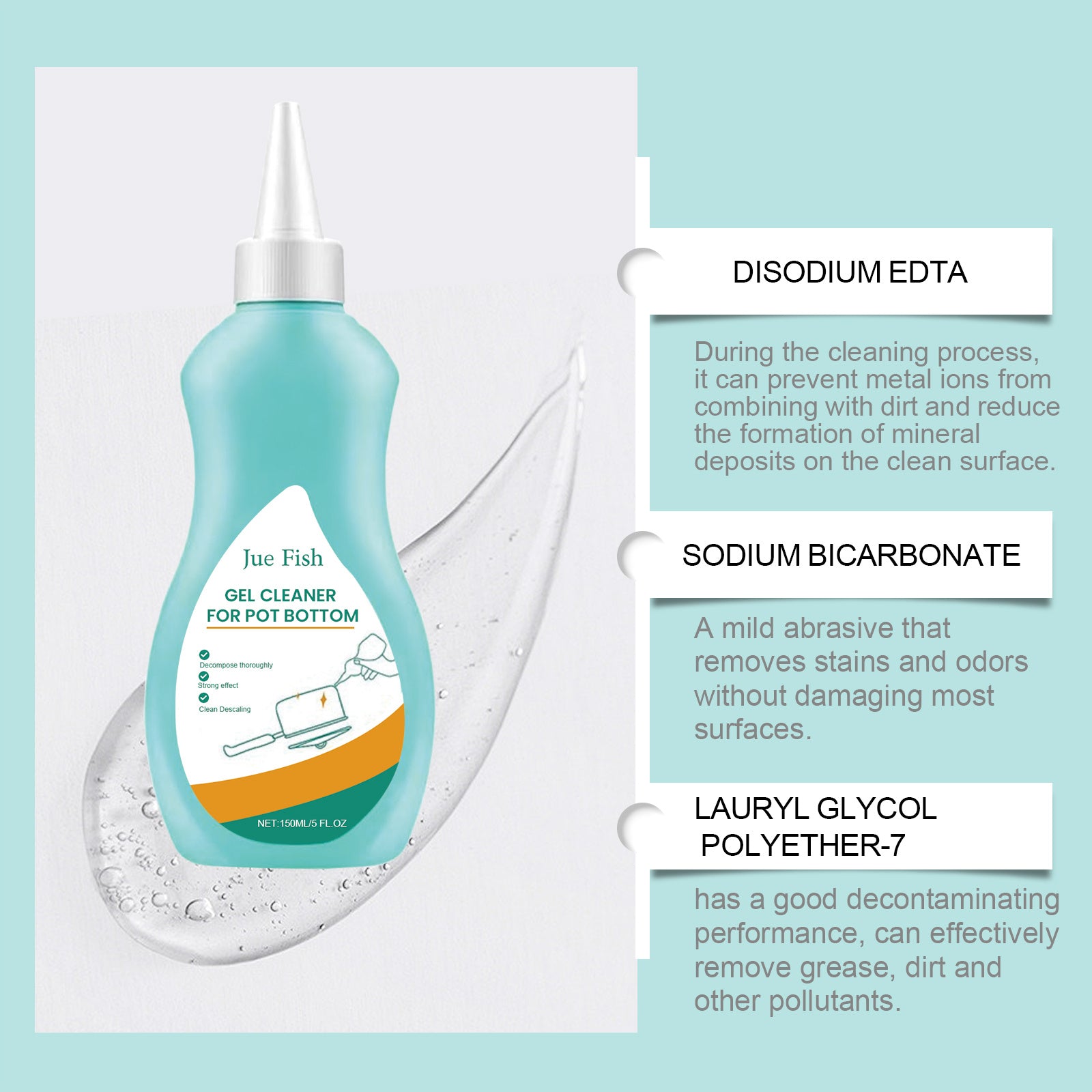 It can penetrate grease and oil stains, soften the black dirt on the bottom of the pot, and loosen and break down the internal structure of the dirt.