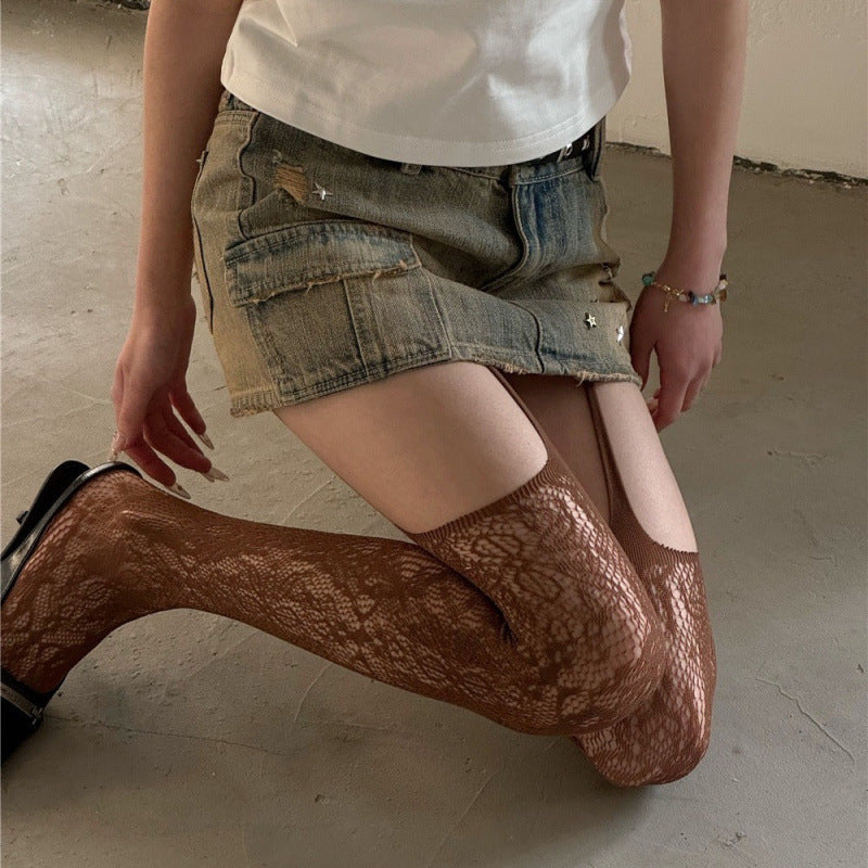 Lace Mesh Hollow Jacquard Black Silk Fishnet Stockings
