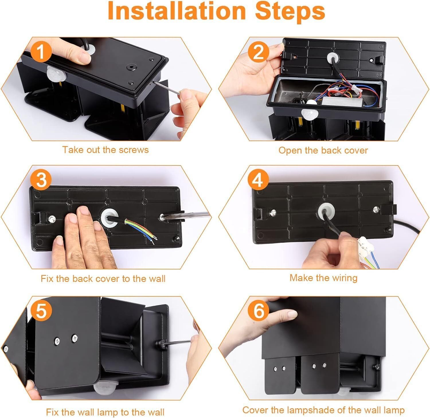 - Nachts ist die Dämmerungssensorfunktion eingeschaltet, die Bewegungssensorfunktion funktioniert kann normal funktionieren. Wenn eine menschliche Bewegung erkannt wird, leuchtet die Wandleuchte automatisch auf und 20-30 Sekunden nachdem die Person den Erfassungsbereich verlassen hat, schaltet sich die Wandleuchte automatisch aus.