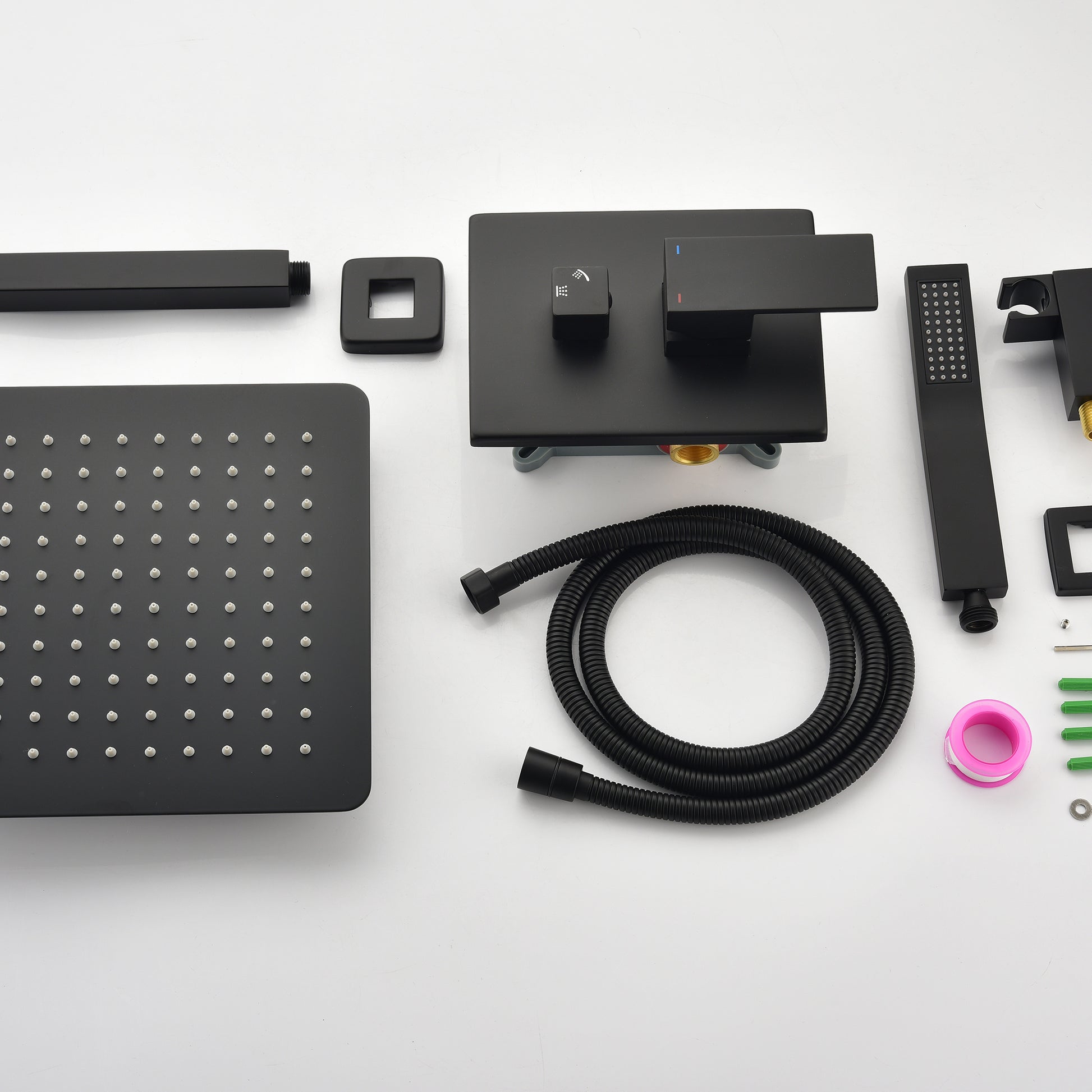 Concealed installation Brass Shower Bracket Holder and Solid Brass Shower Mixer Valve(Contain Trim and rough-in valve);Brass L-Style Handheld Shower Head with 304 Stainless Steel Shower Hose.