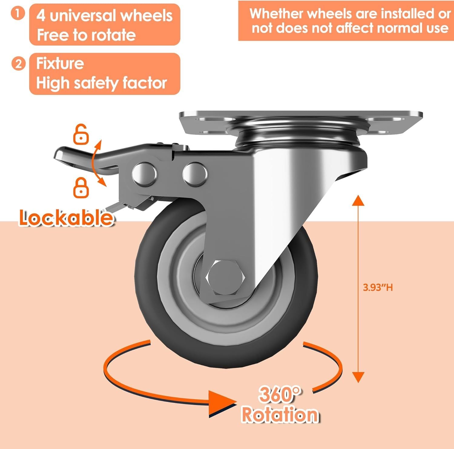 - 【Rotating Casters】 4 detachable rubber casters, easy to move, two can be locked. It is equipped with four bottom corner protection devices to ensure maximum safety. We use heavy-duty rubber wheels to provide comprehensive protection for all surfaces (hardwood, laminate, tile, carpet, etc.). It will not be scratched, but it is easy to move. If it needs to be replaced, the casters can be removed.