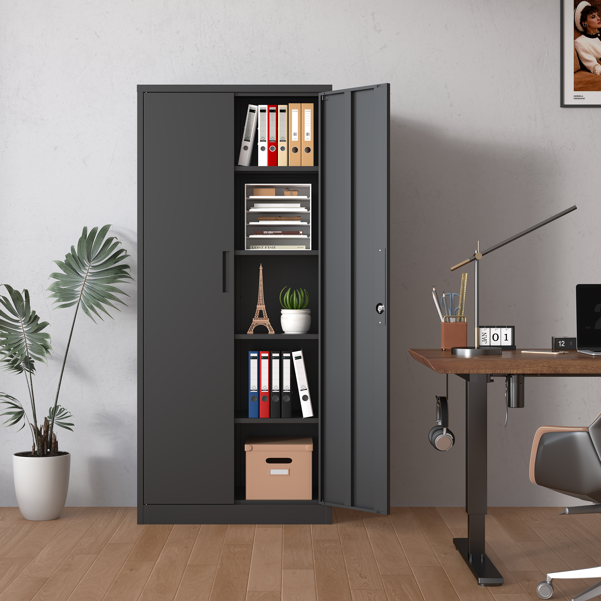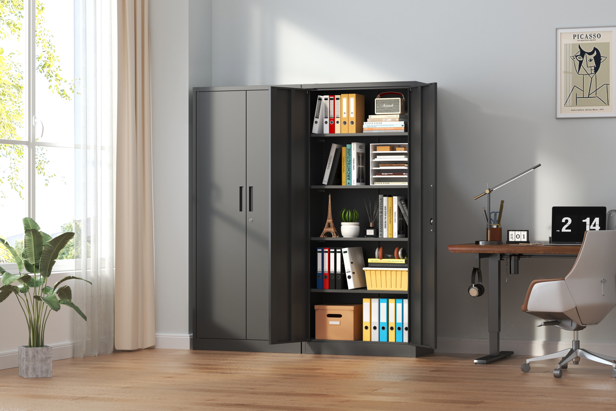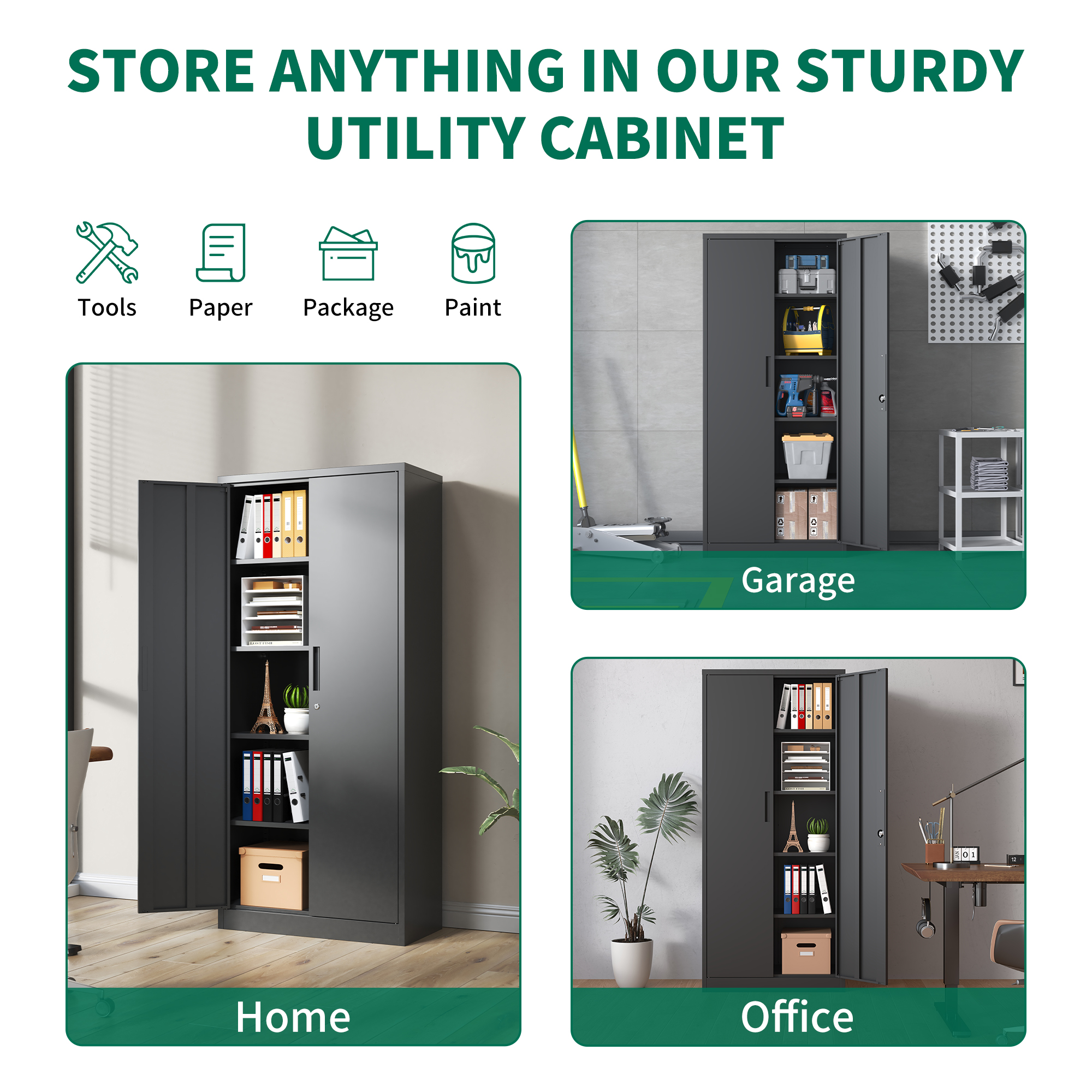 Metal Garage Storage Cabinet, Black Tool Steel Locking Cabinet With Doors And 4 Shelves, Tall Cabinets For Garage Storage Systems Lockable File Cabinet For Home Office, Classroom Pantry
