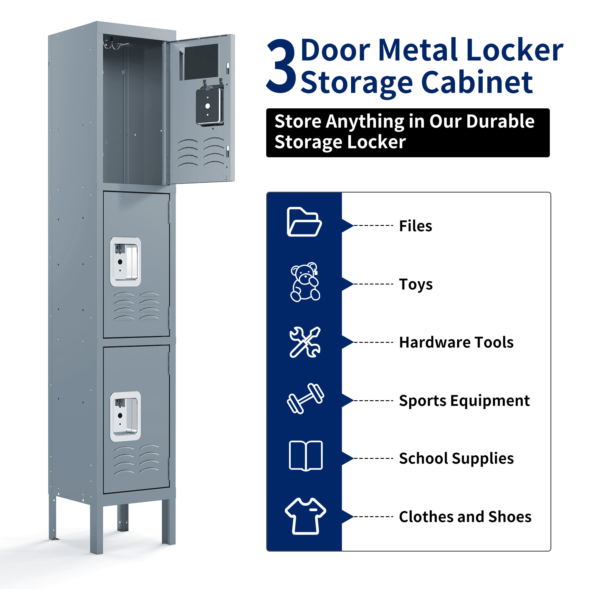 Metal Lockers For Employees With 3 Door Storage Locker For Employees Gym School Home Office Garage - Assembly Required Gray