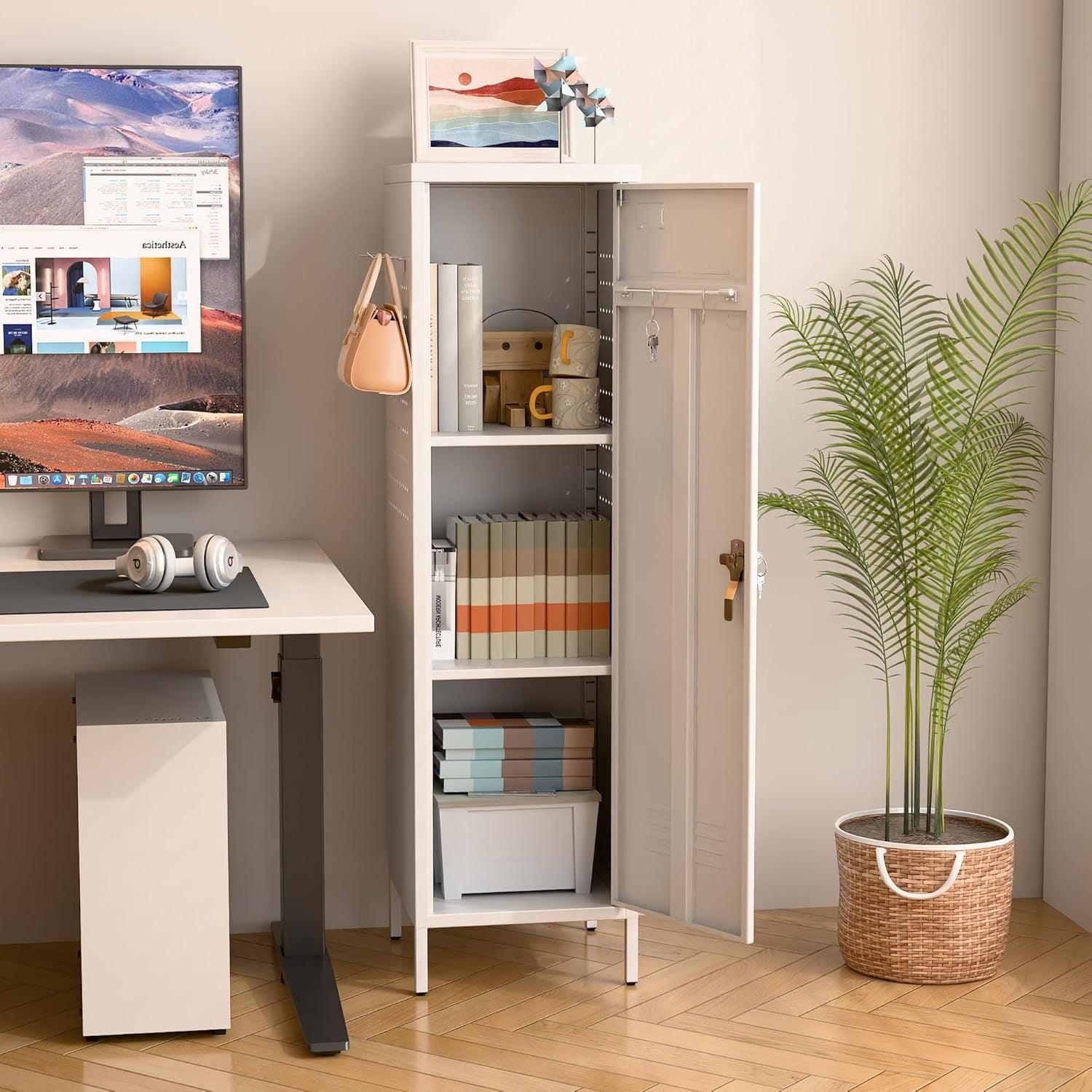 Metal Lockers For Employees With Handle,Metal Storage Locker With 2 Pegboard & 5 Hooks For Gym, School, Office,Home,Garage,White