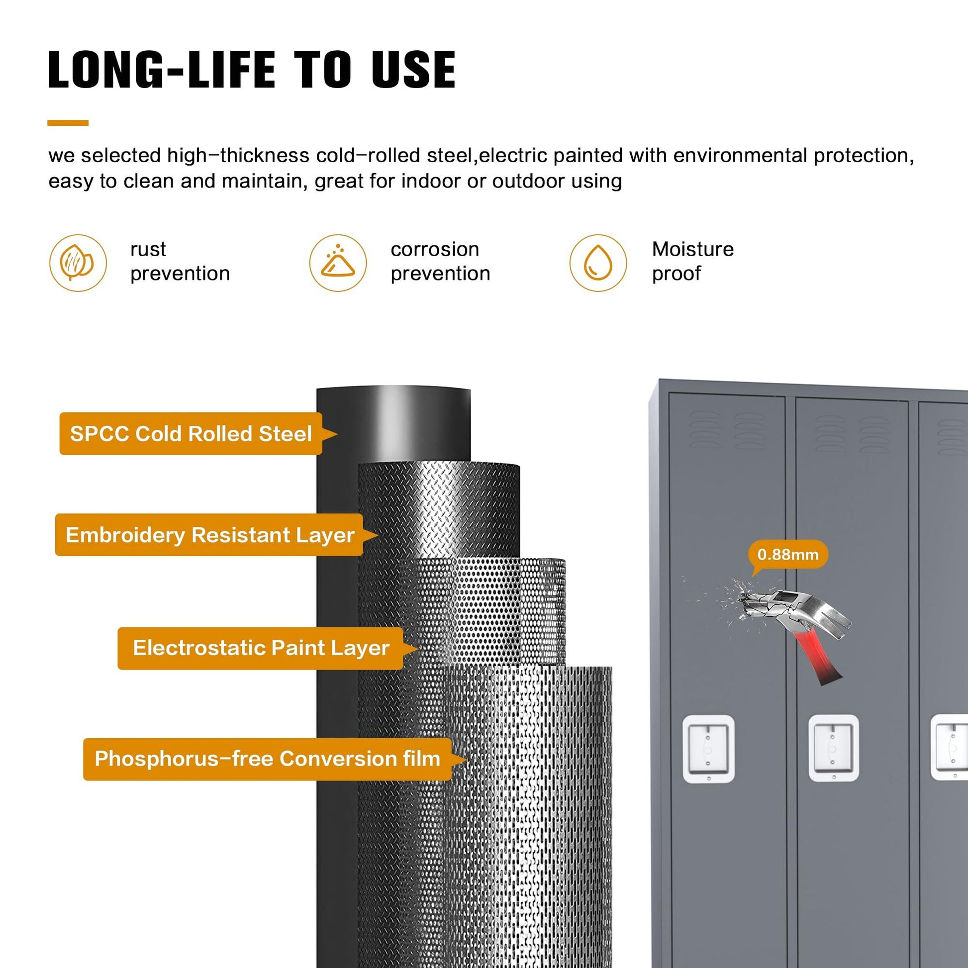 Metal Storage Locker For Employees, 72 Employee Locker With 3 Doors&9Hooks For School Gyms Homes Garages Offices Study With Assembly Required, Light Gray