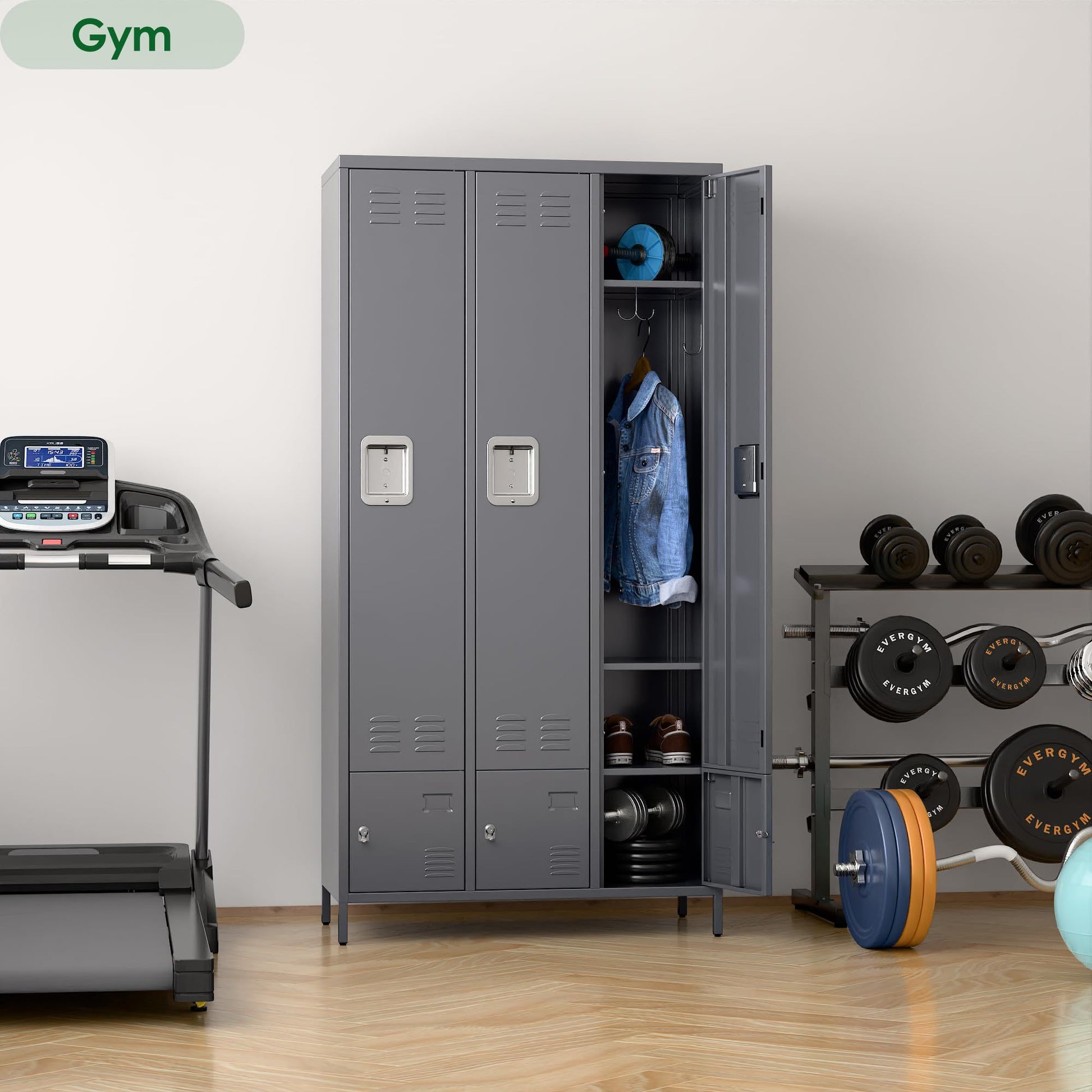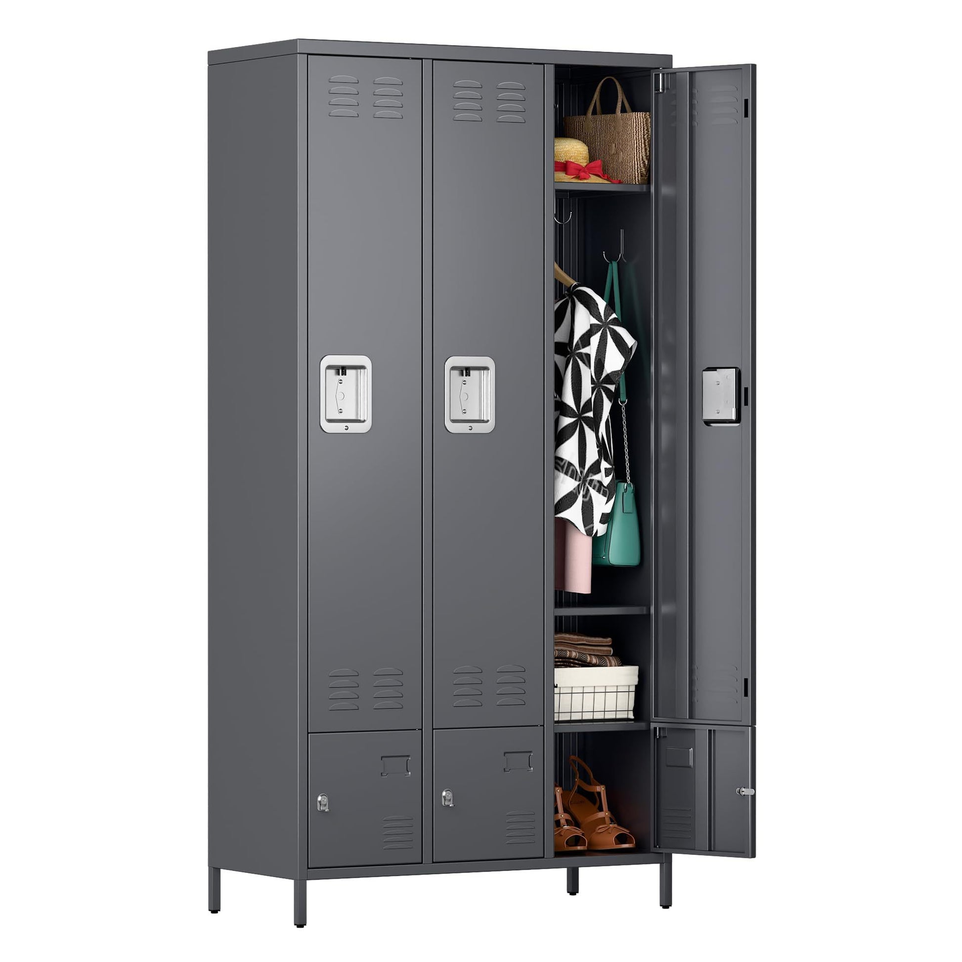Metal Storage Locker With 3 Big Doors & 3 Small Doors, Lockers For Employees With Hooks For School Garage Office Gym Bedroom,Assembly Required,Dark Grey