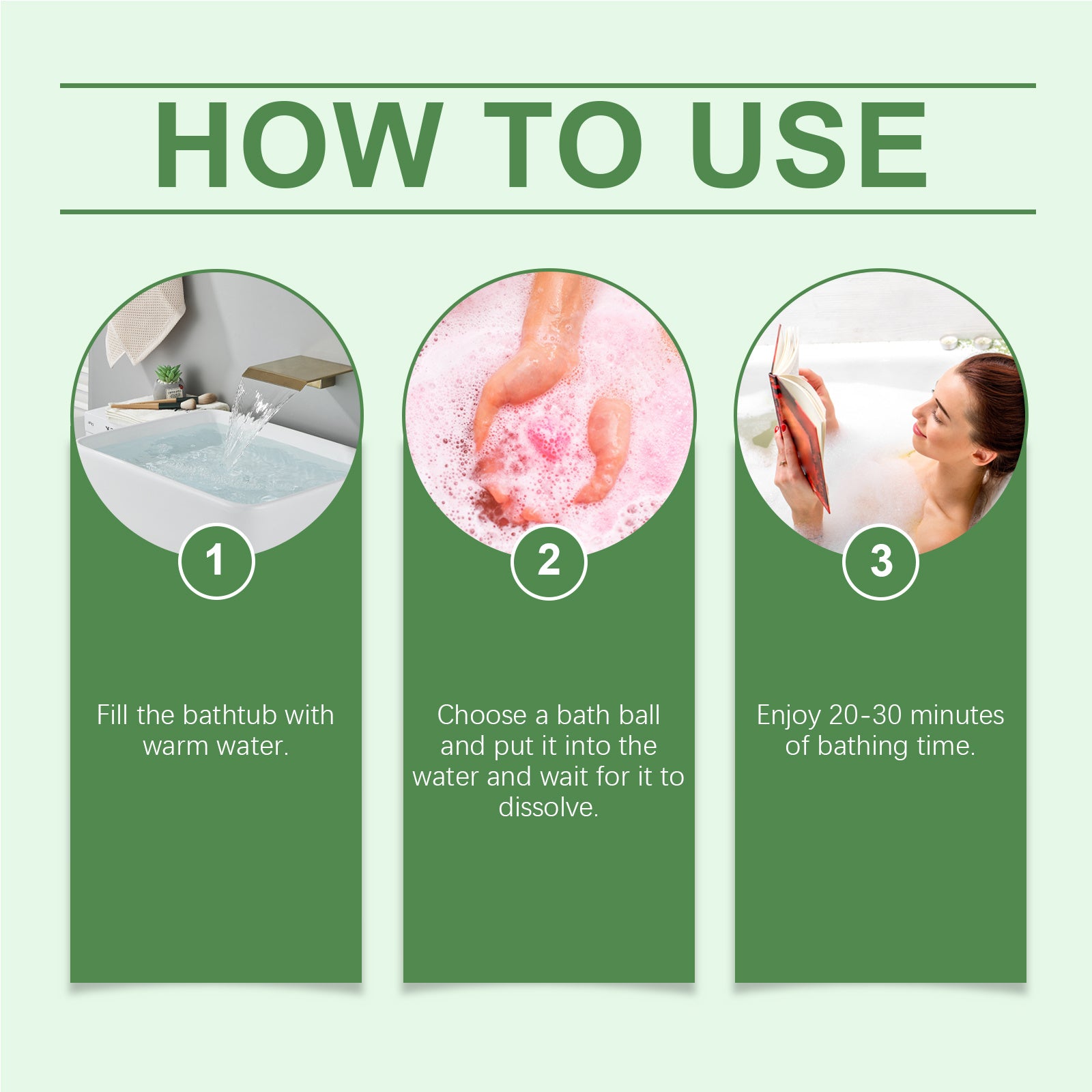 Our fragrant shower balls contain rose extract, dragon fruit extract. It improves skin softness and soothes the body and mind. Family essentials, suitable for all types of family members. Its use is simple: fill the bathtub with warm water, choose a bath ball, put it in the water, wait for it to dissolve, and enjoy the bath time for 20-30 minutes. And has a unique fragrance technology, so that the skin after the bath for a long time to emit elegant flowers.