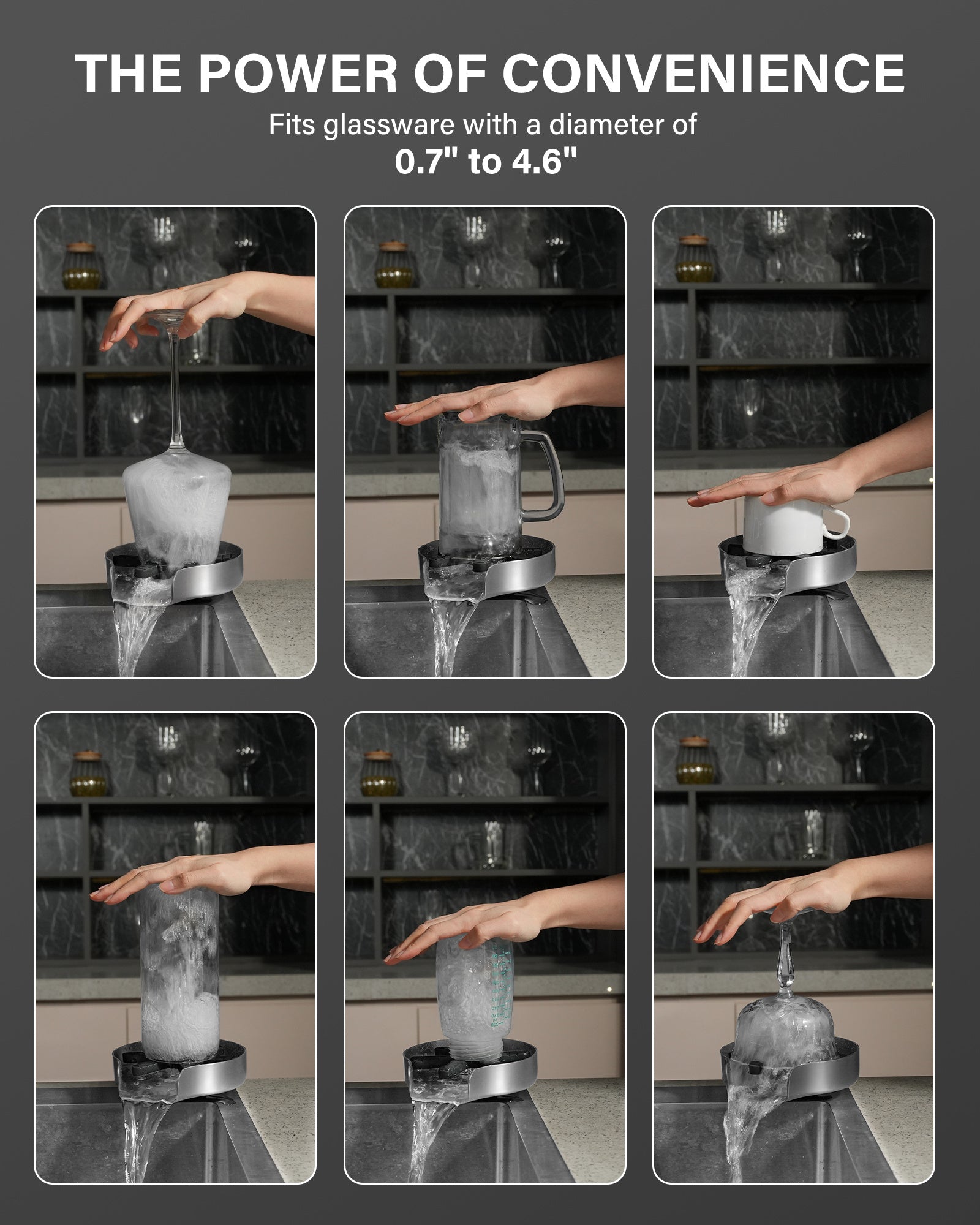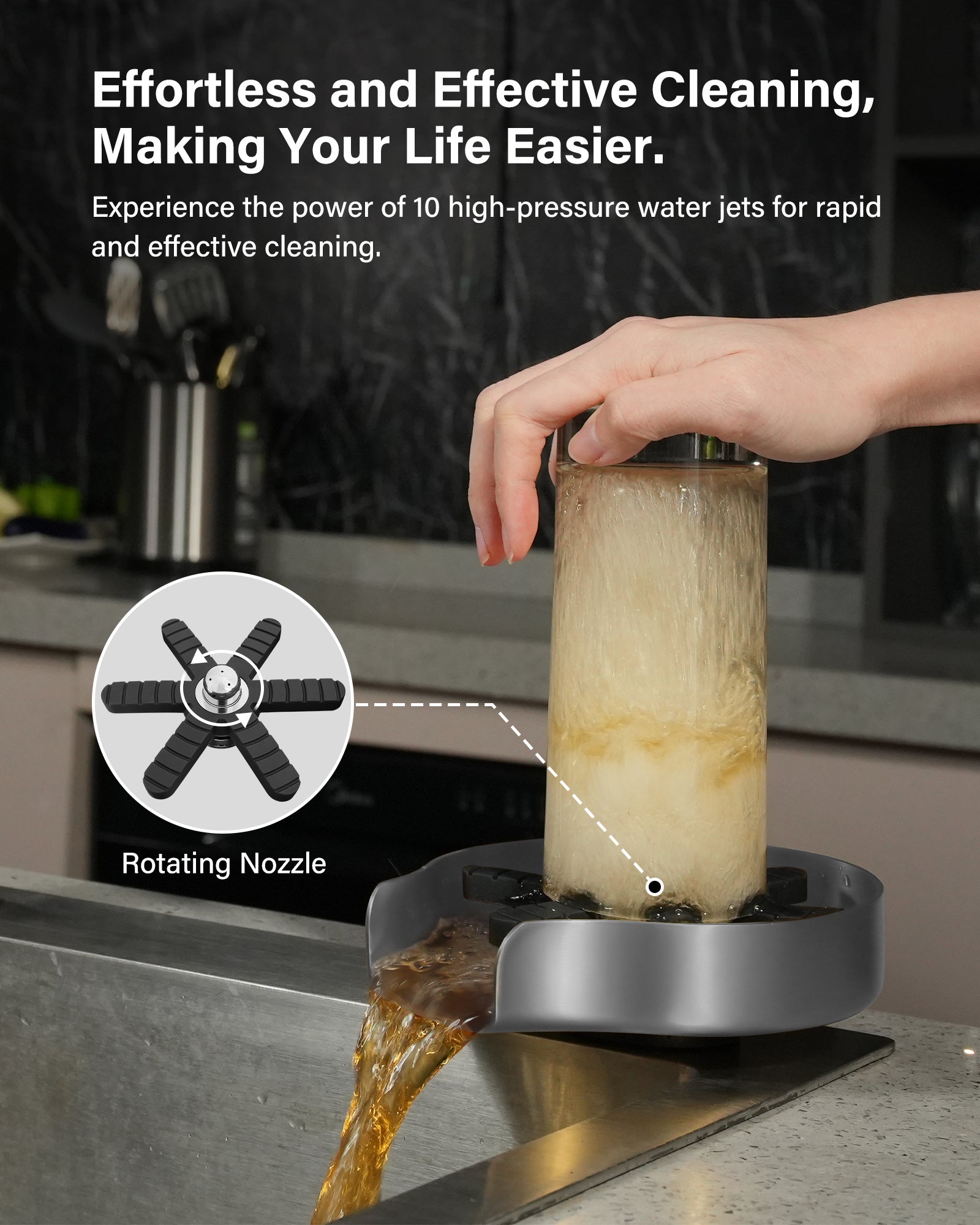 - [Quick Cleaning] Experience fast and efficient rinsing with our advanced glass rinser featuring a “360° StormJet” rotating nozzles, quickly blasting away coffee grounds, milk residue, and juice stains in 5 seconds. Turn rinsing into a fun, kid-friendly experience