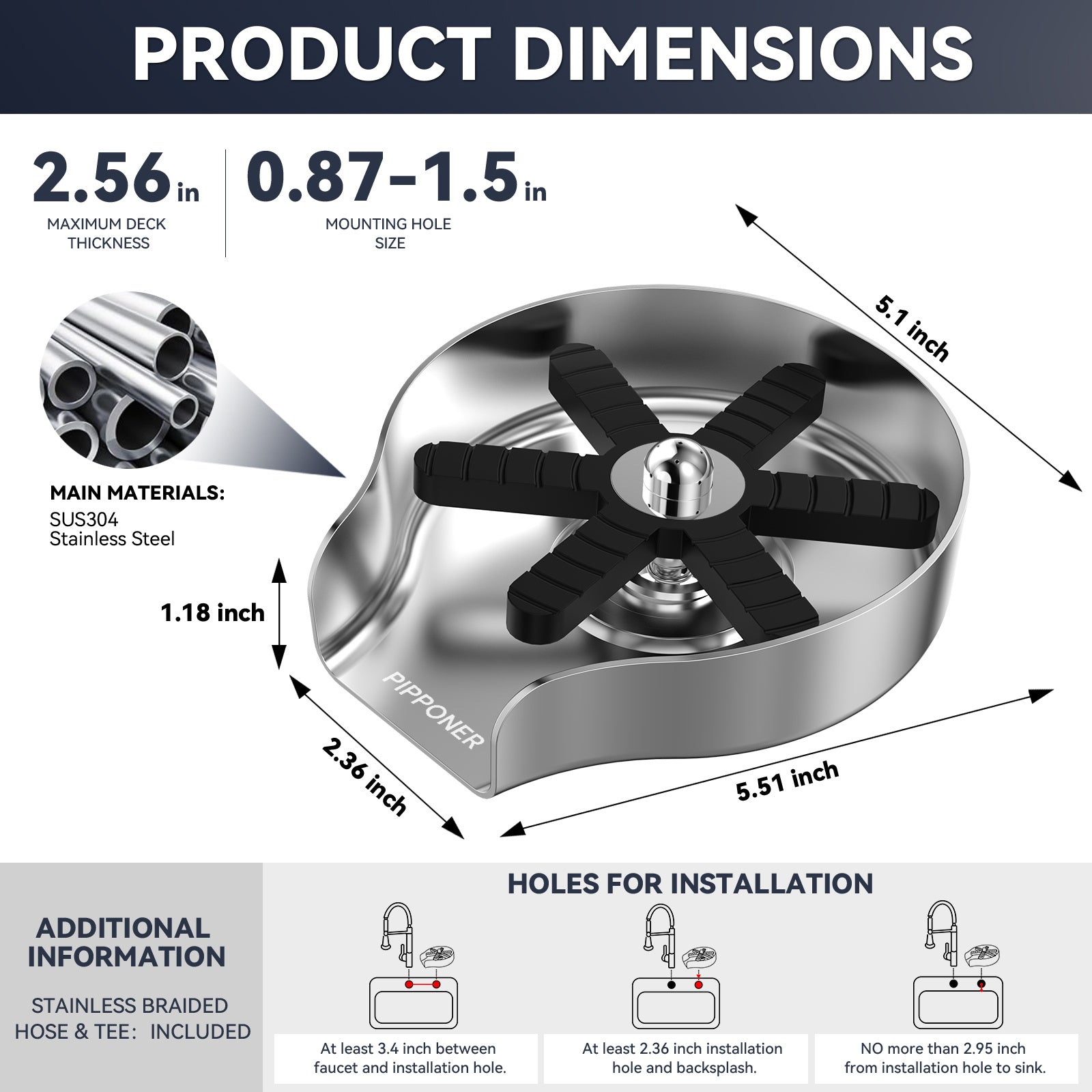 [Larger Size] Our bar glass rinser features a spacious 5 x 5.51-inch design ideal for large countertops. It efficiently rinses a wide range of glassware and doubles as a soap dispenser alternative, making it a perfect kitchen sink accessories