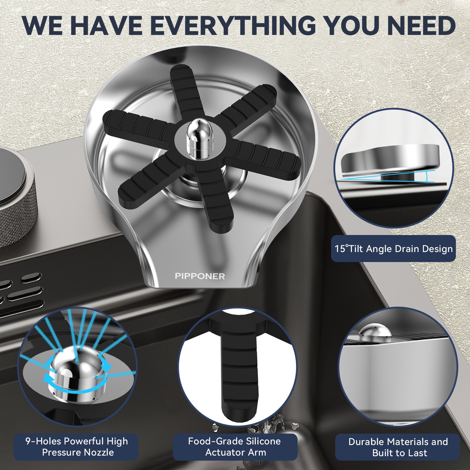 PIPPONER Metal Glass Rinser For Kitchen Sink, 5-inch High Pressure Cup Washer With Hose, Stainless Steel Glass Washer For Sink, DIY Sink Bottle Washer For Home And Commercial Use
