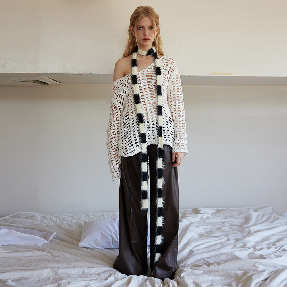 Plush Mink-like Striped Thin And Narrow Decoration Small Scarf Women