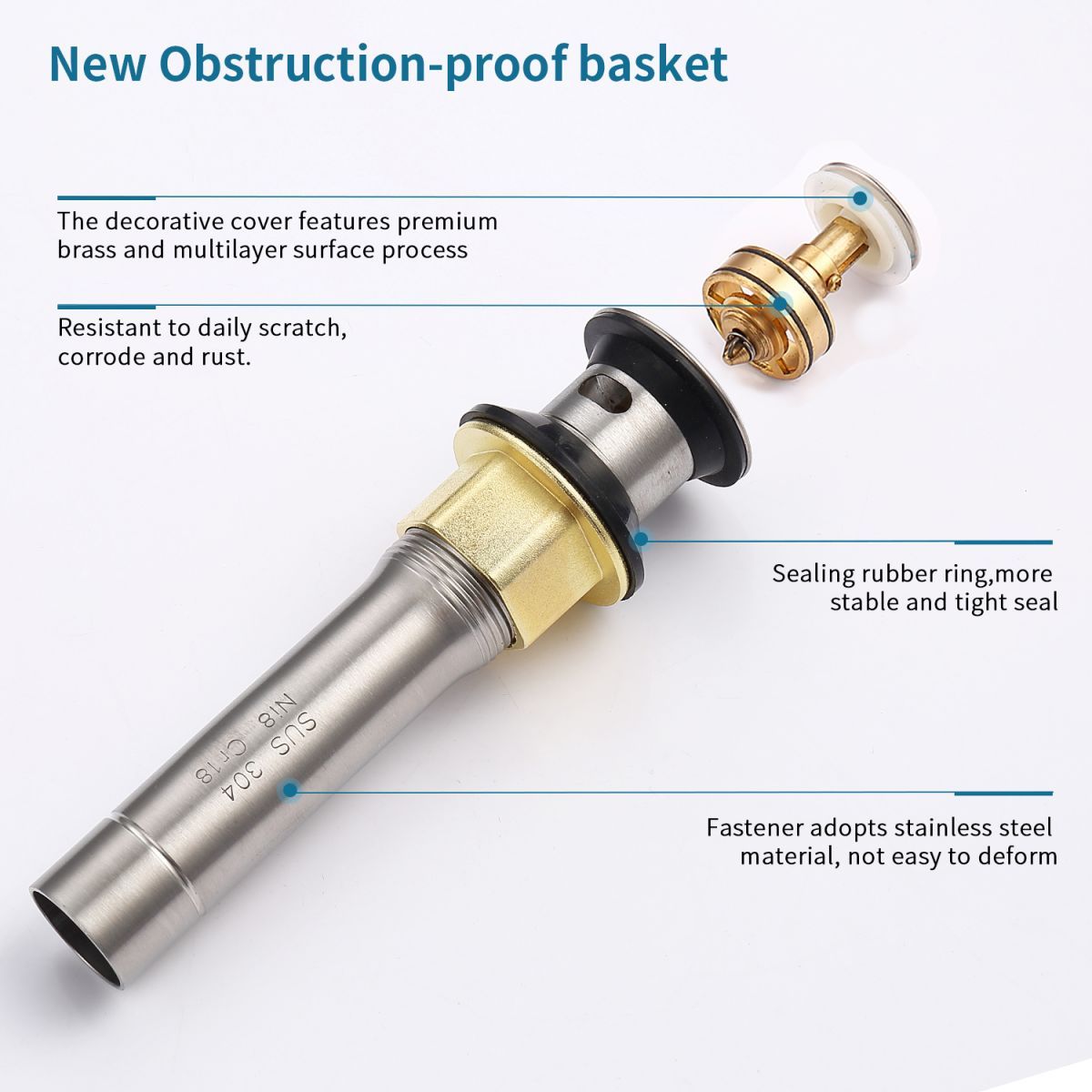 Pop-Up Drain Stainless Steel With Overflow Anti-Clogging For Vessel Sink Lavatory Vanity Sink Drain With Strainer Basket, Matte Black