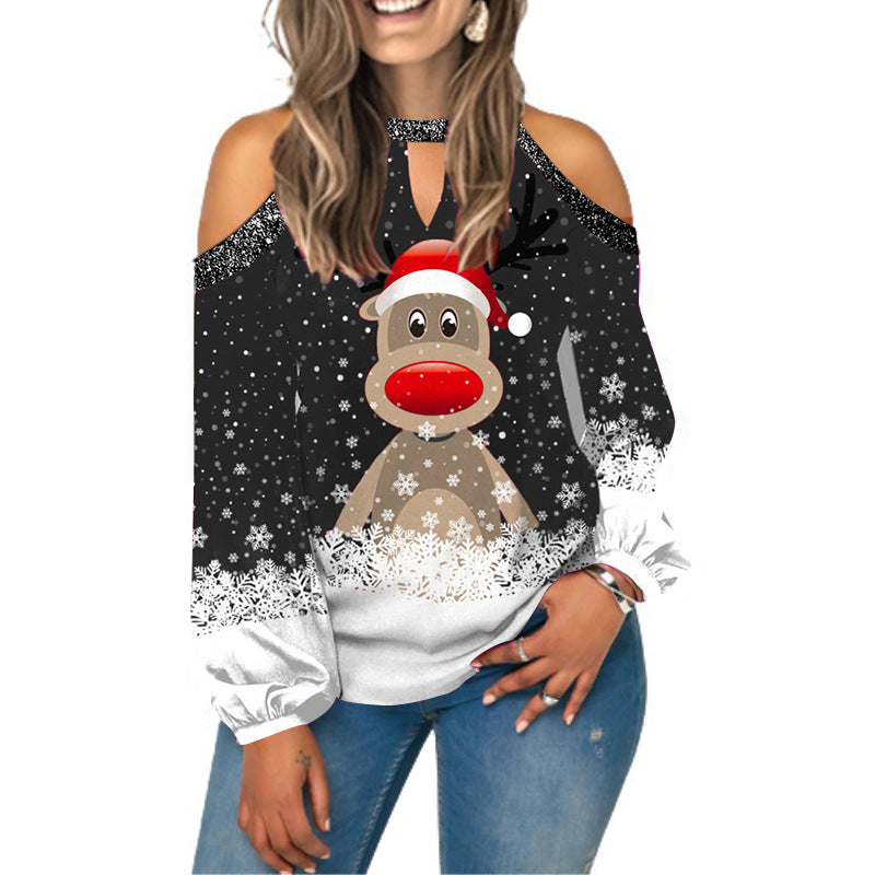 Printed Sexy Off-the-shoulder Plus Size Blouse Lantern Sleeve T